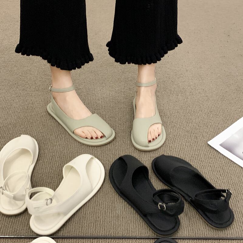 サンダルサマーウィメンズ2022ニューネットレッドスーパーオールマッチレトロバックルフラットボトムノンスリップトゥヘッドローマンシューズ 靴 夏物 jxjxf79146838290