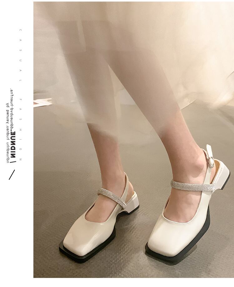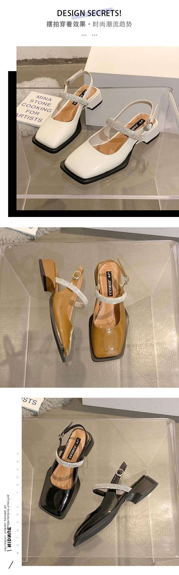 包頭サンダル女性の2022年夏の新しいネットレッドオールマッチレトロラインストーンローヒール滑り止めの小さな革の靴の潮 シューズ サマー 夏物 レザー jxjxf60130323676