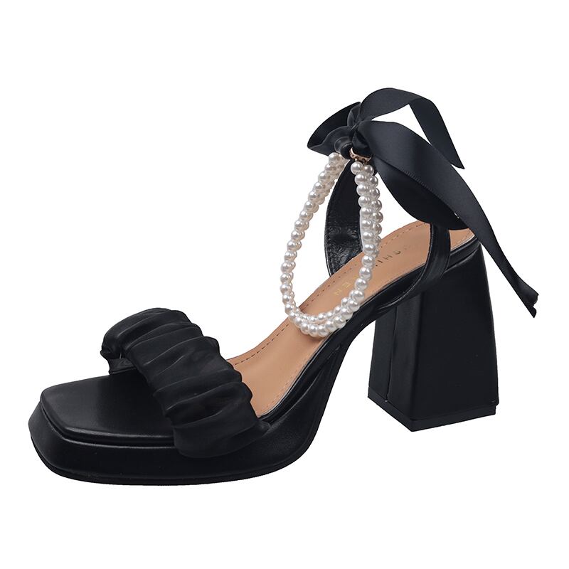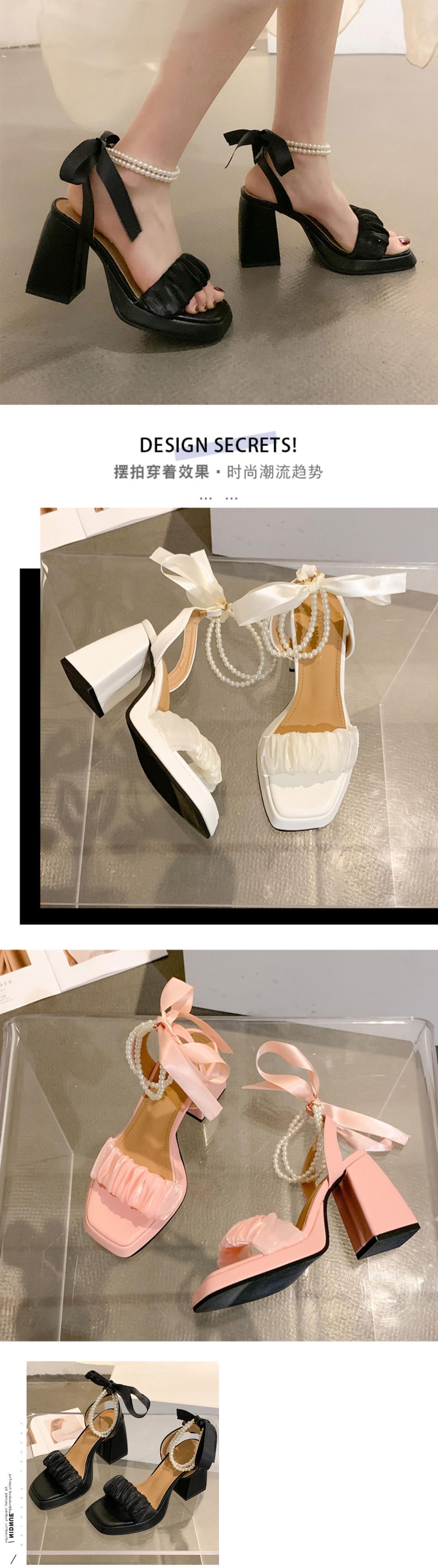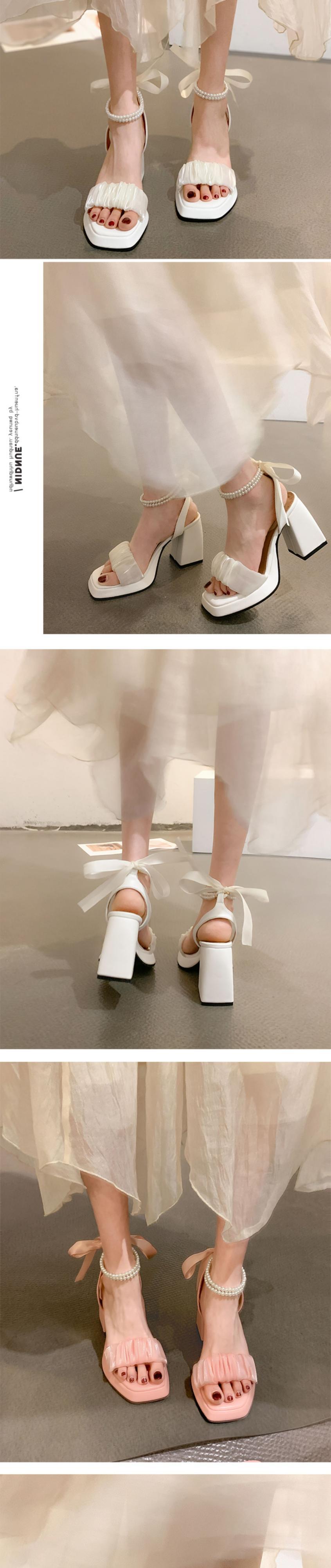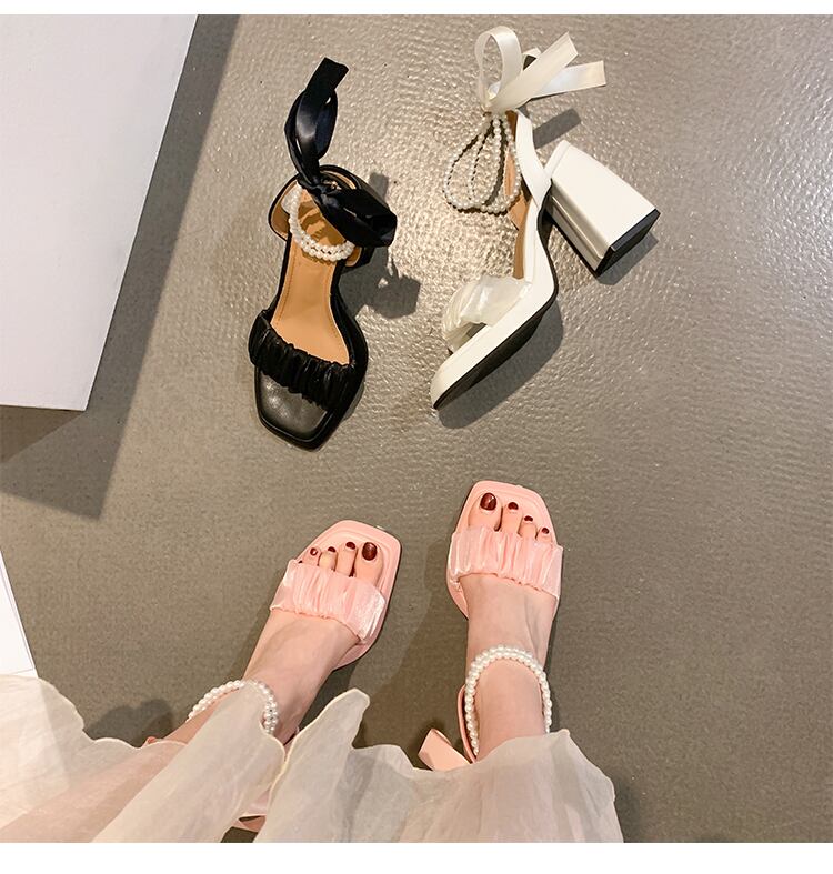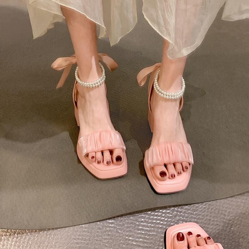 サンダルレディーススカート2022年夏の新作ファッションオールマッチフェアリースタイルパールレースアップ厚手のヒールハイヒールシューズ 靴 サマー 夏物 真珠 jxjxf42179287837