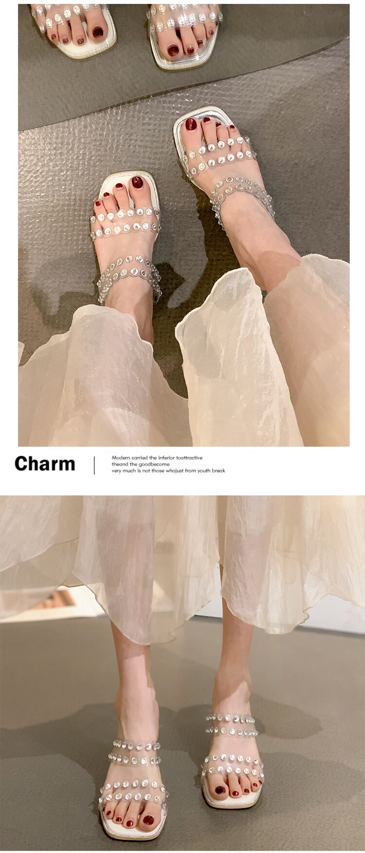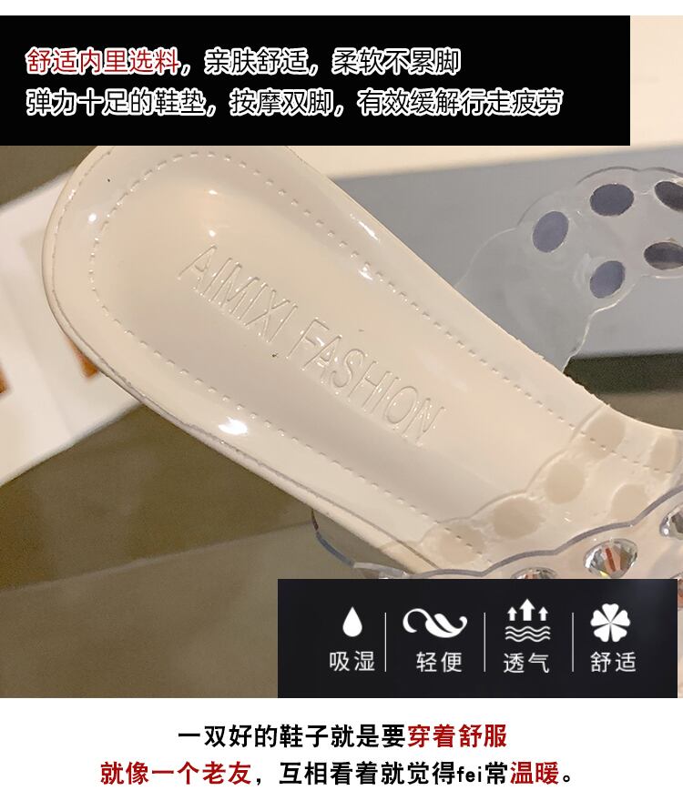 ネットの赤いスリッパの女性は、2022年の新しいファッションラインストーンをオールマッチのクリスタルハイヒールの滑り止めのワンワードサンダルとスリッパを夏に着用します レッド 靴 シューズ ミュール サマー 夏物 スリッポン jxjxf93375159509