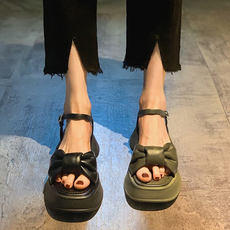 サンダルレディース2022夏の新しい厚いヒール滑り止めネット赤いファッションオールマッチ小さなフランスのレトロなローマの靴 シューズ レッド サマー 夏物 jxjxf53108271178