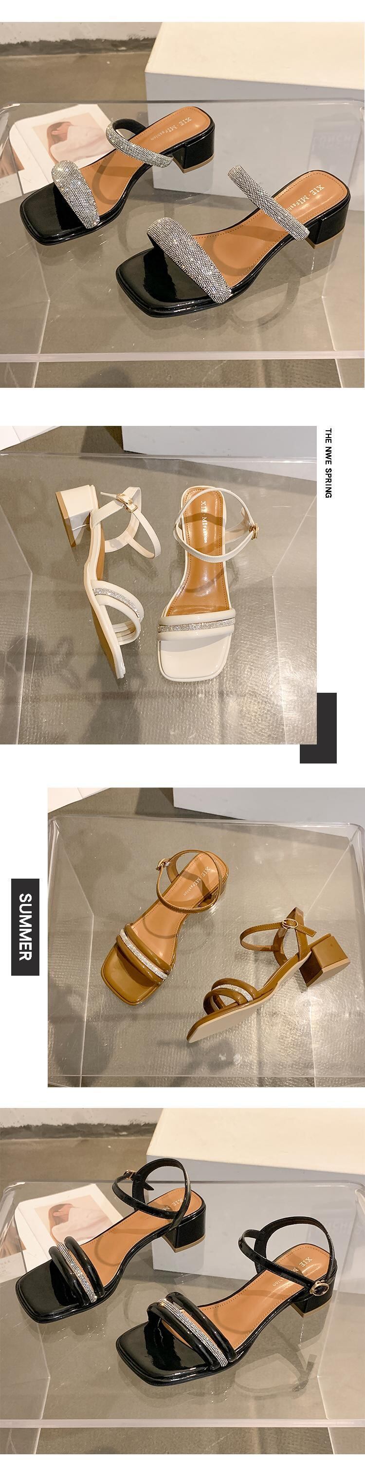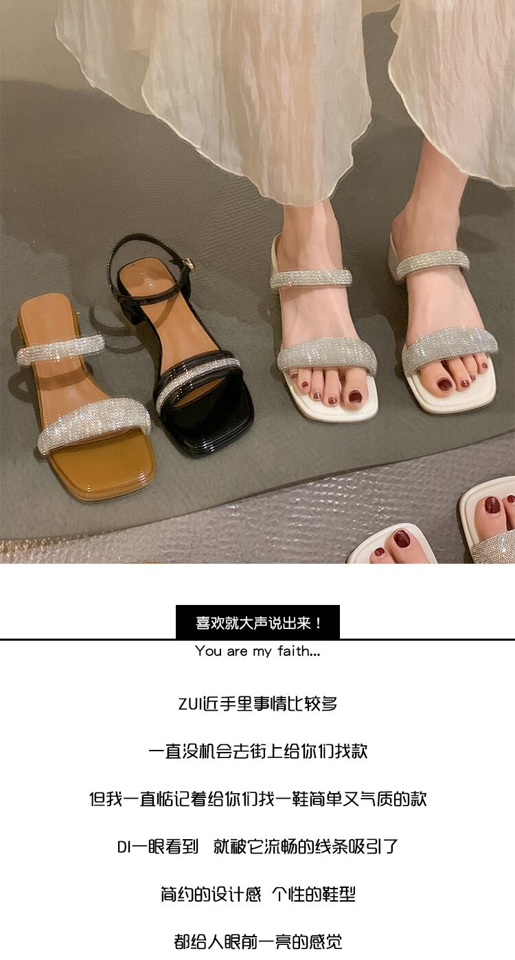 フェアリースタイルのサンダルレディース2022年夏の新しいラインストーンミッドヒールノンスリップファッションオールマッチレトロワードローマの靴 シューズ サマー 夏物 jxjxf49751461150
