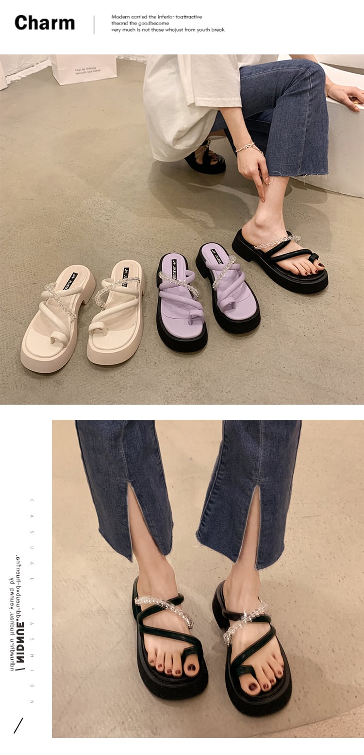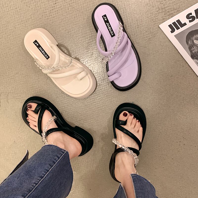 アウターシューズ2022年夏の新作ネットレッドスーパーファッションオールマッチ厚手のヒールノンスリップセットトゥサンダルとスリッパタイド ミュール 靴 サマー 夏物 jxjxf52795291199