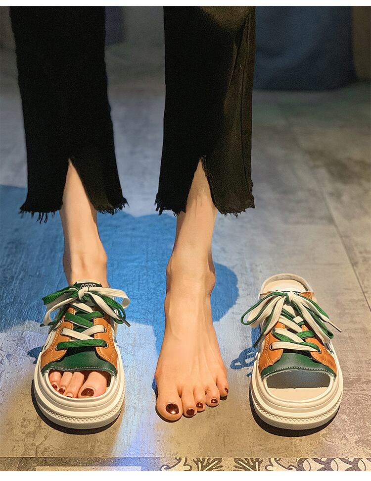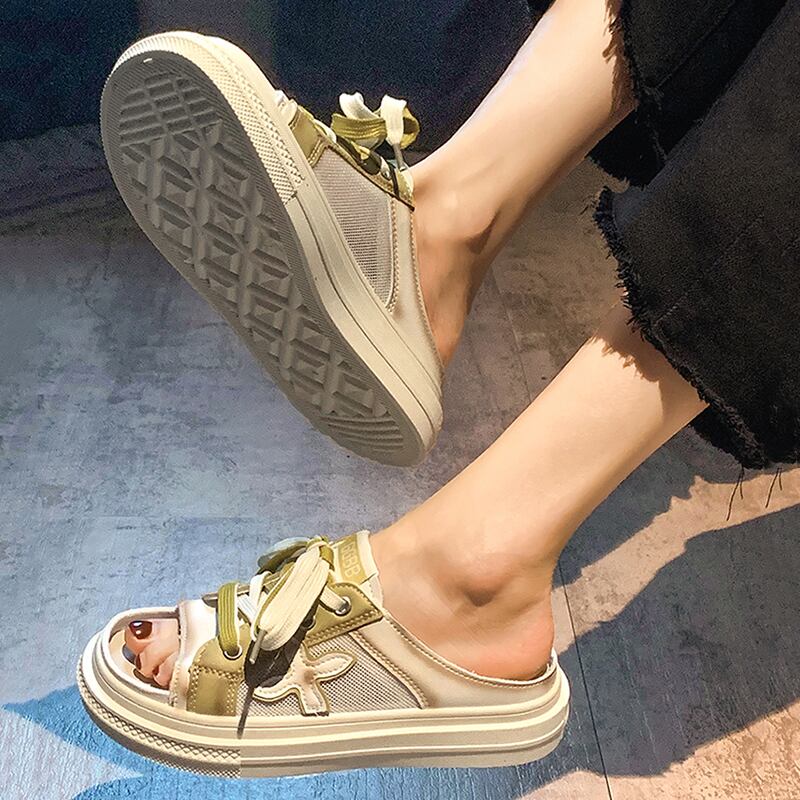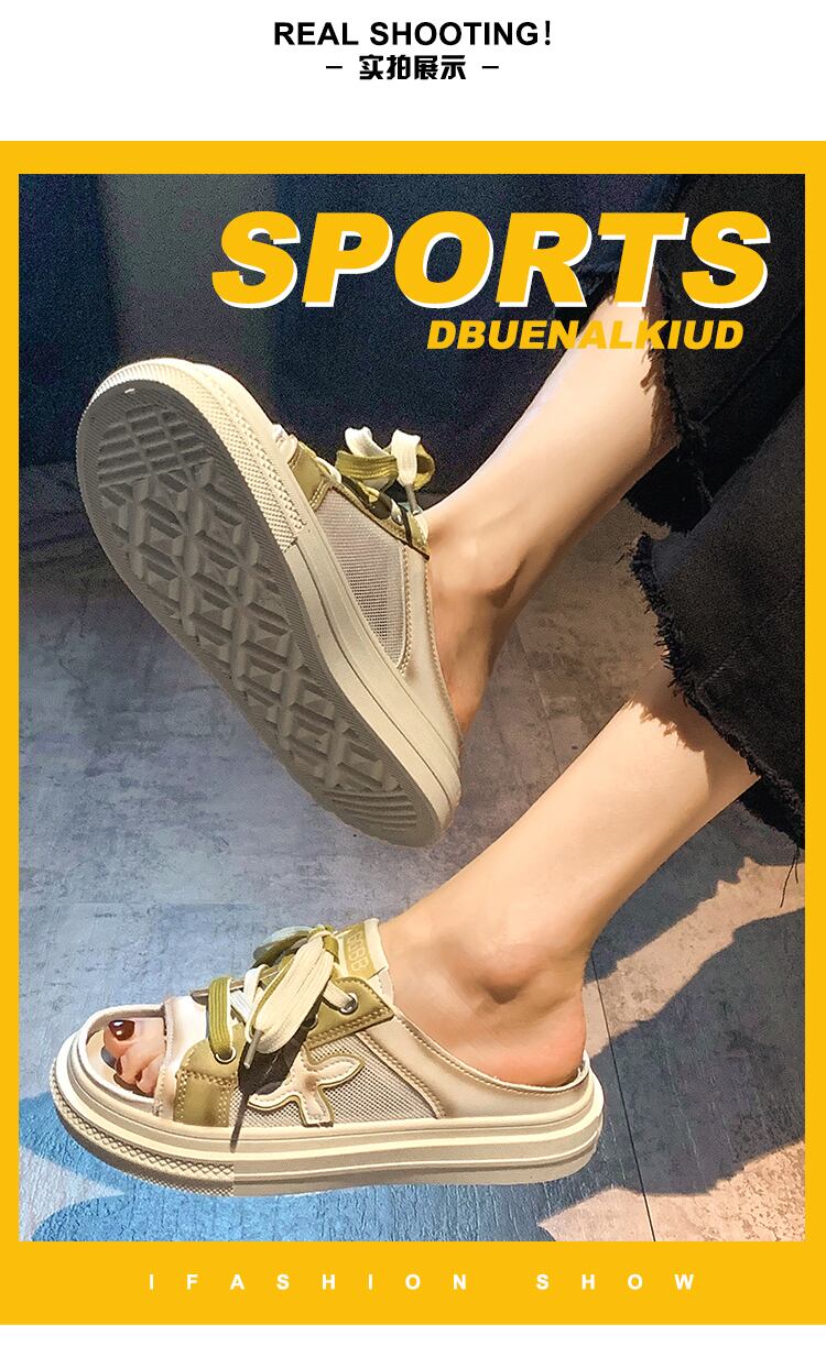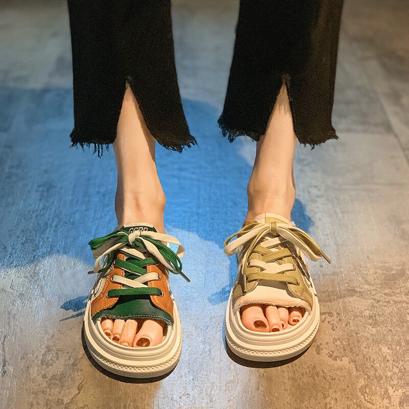 女性の2022年夏の外のスリッパ新しいレースアップ厚い底滑り止めネット赤いファッションオールマッチストリートシューティングレトロ一言スリッパ レッド ミュール 靴 シューズ サマー 夏物 jxjxf98206644082