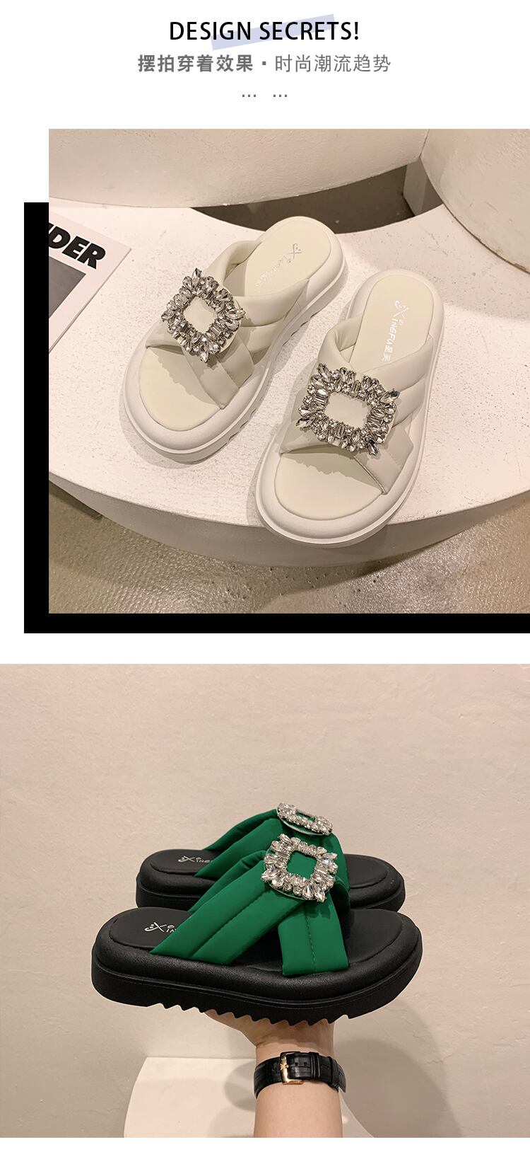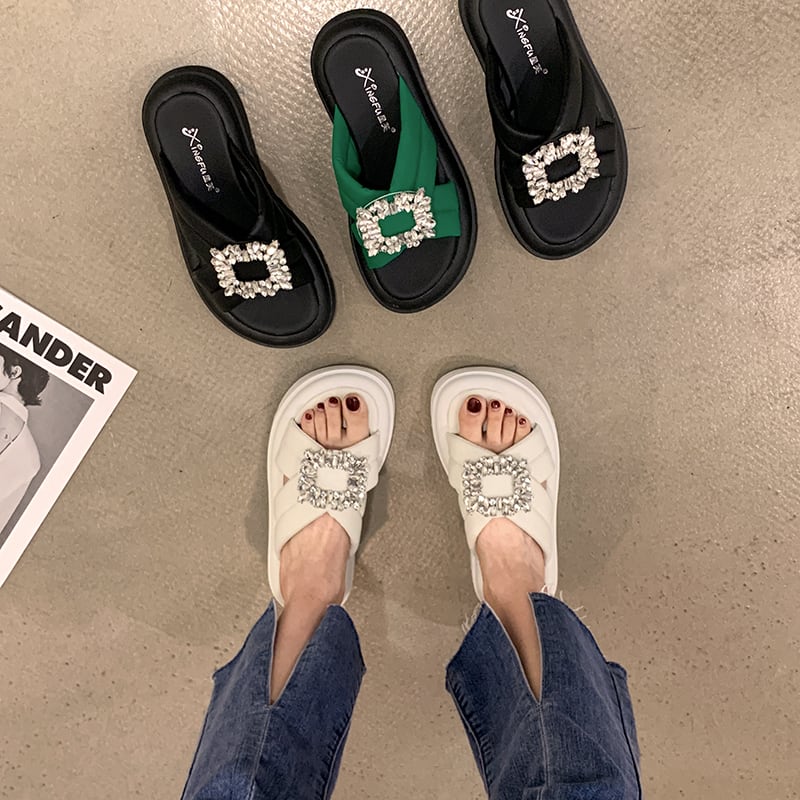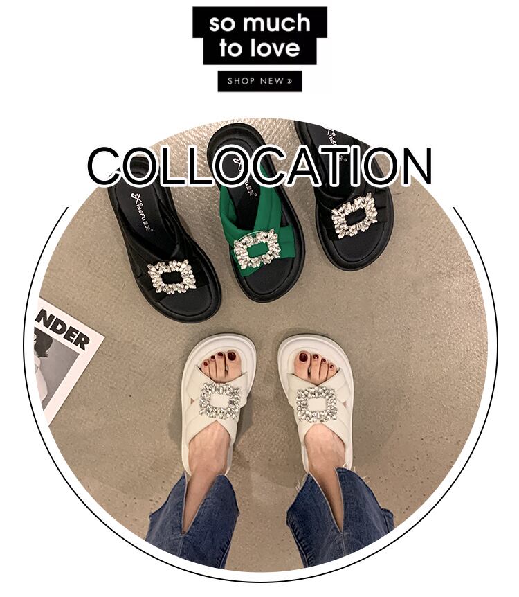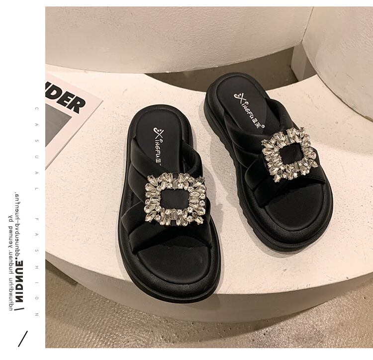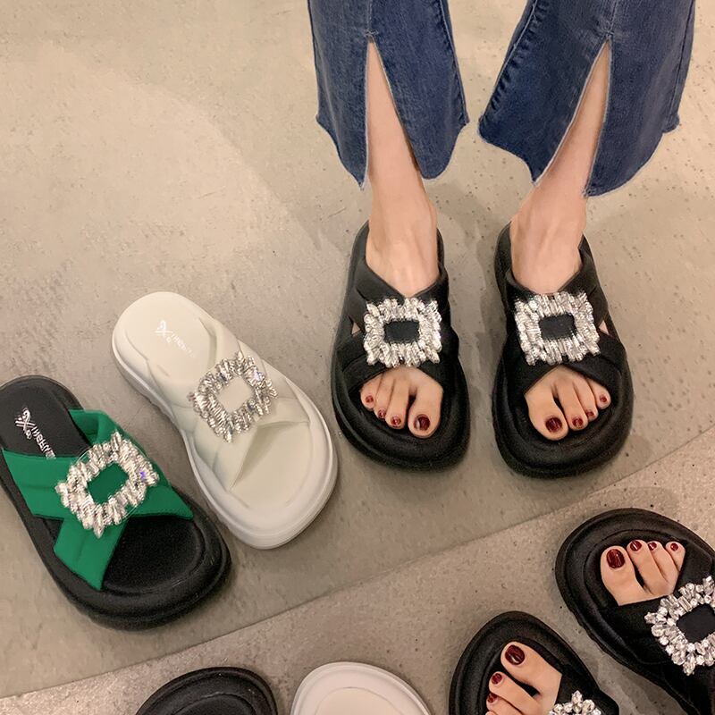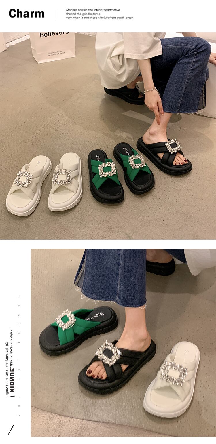 可能なアウターウェアスリッパ女性の2022年夏の新しいオールマッチレトロラインストーン厚い底滑り止め一言サンダルとスリッパ潮 ミュール 靴 シューズ サマー 夏物 スリッポン jxjxf12443734078