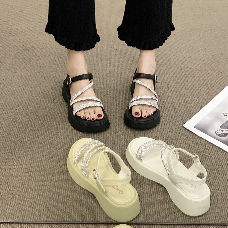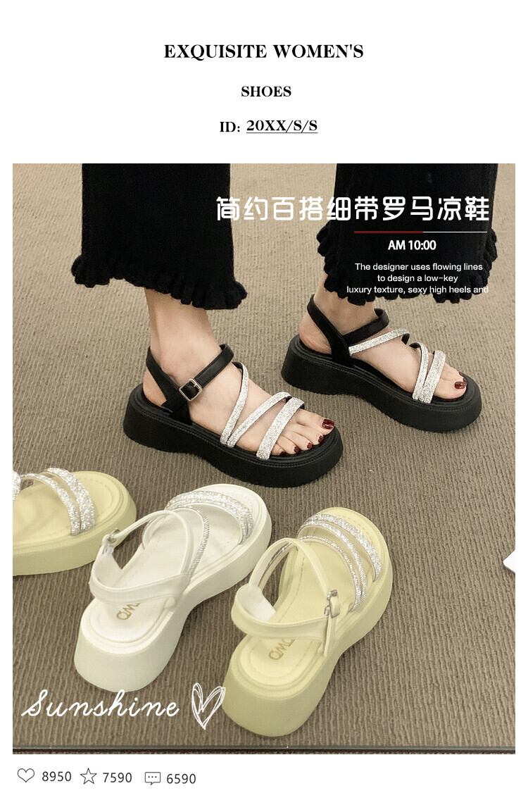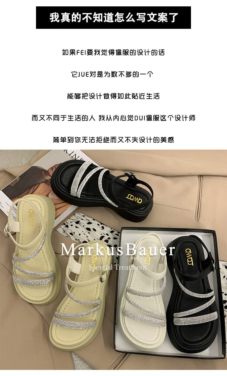 ネットレッドサンダル女性の2022年夏の新しい妖精スタイルのファッションラインストーン小さな厚い底滑り止めビーチシューズ潮 靴 サマー 夏物 jxjxf84406324226