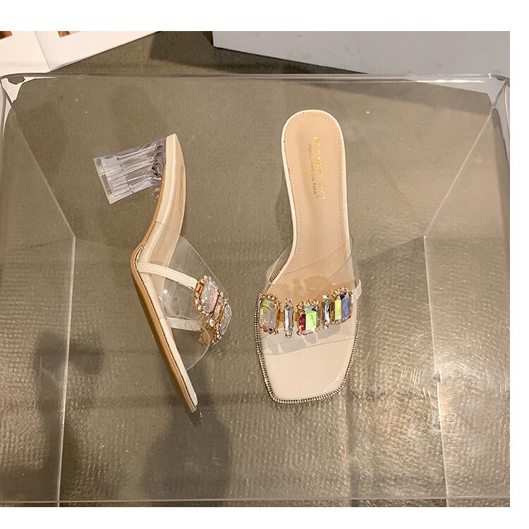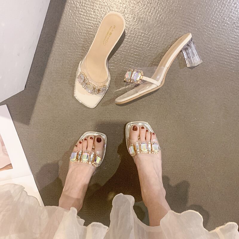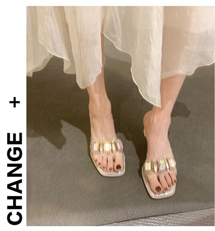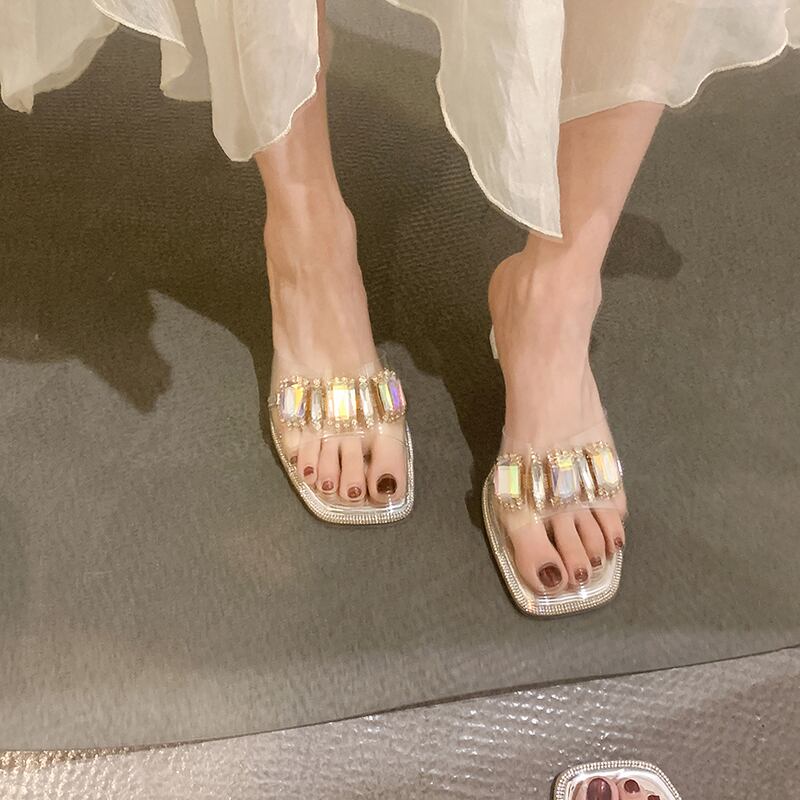 女性の2022年夏の外のスリッパ新しいラインストーンの厚いヒールネットの赤いファッションオールマッチの妖精スタイルのクリスタルとフリップフロップ レッド ミュール 靴 シューズ サマー 夏物 jxjxf51188462745