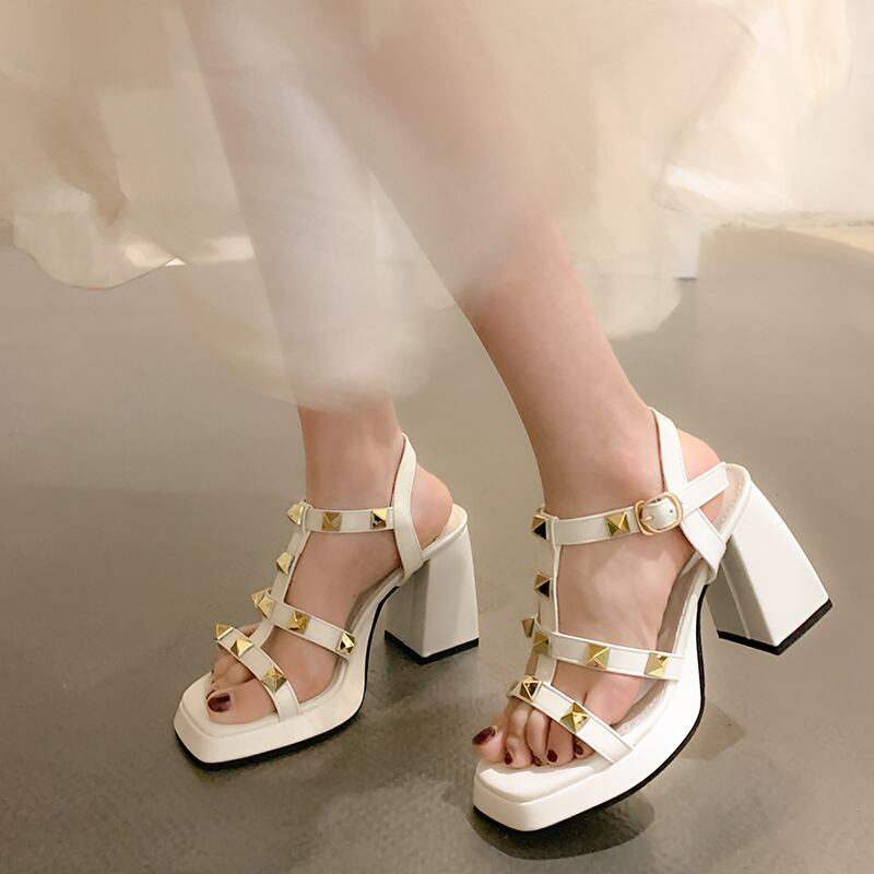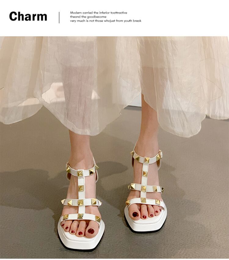サンダルレディース2022夏の新しいファッションオールマッチレトロリベットバックル小さな厚いヒール滑り止めローマの靴 シューズ サマー 夏物 jxjxf78103271444