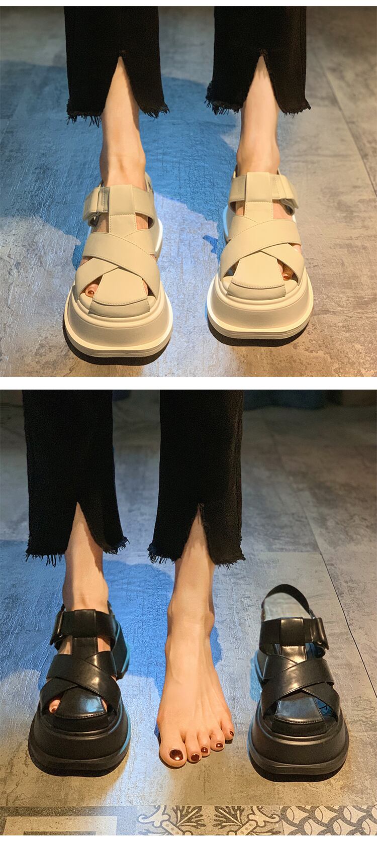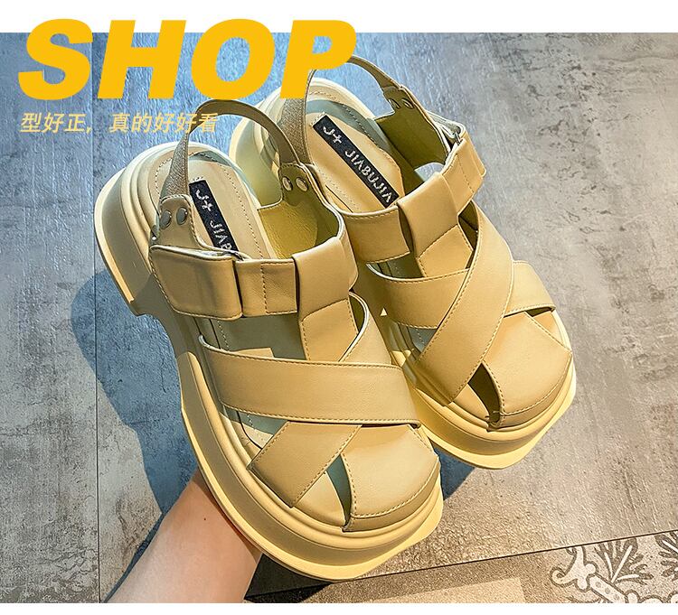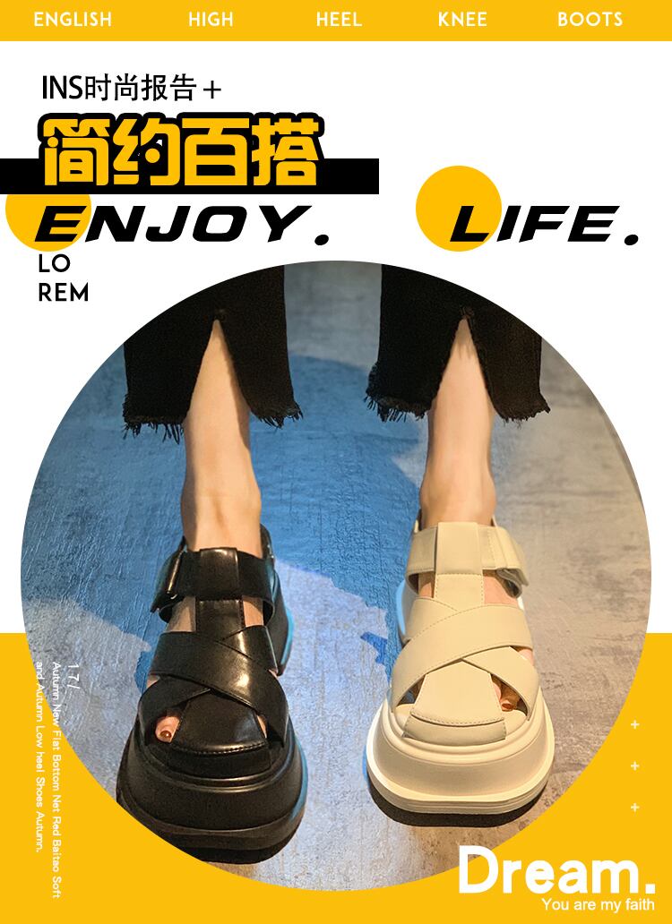 ローマの靴の女性の2022年夏の新しいベルクロ厚手のヒール滑り止めファッションオールマッチレトロ包頭サンダルinstide シューズ サマー 夏物 jxjxf51507283111
