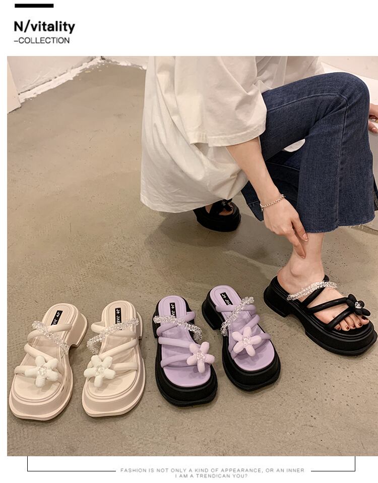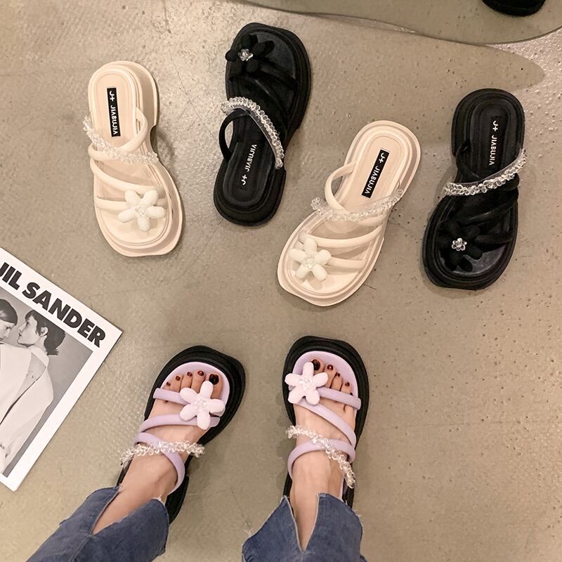 スリッパ女性の潮汐2022年夏の新しいオールマッチクリスタルフラワー小さな厚い底の妖精の風のサンダル ミュール 靴 シューズ サマー 夏物 フラワーデザイン jxjxf98964344712