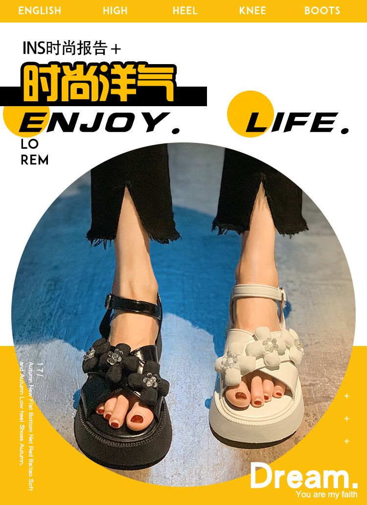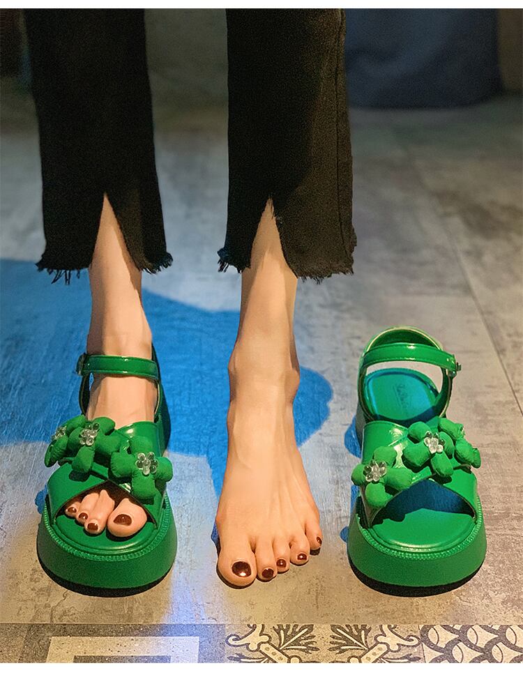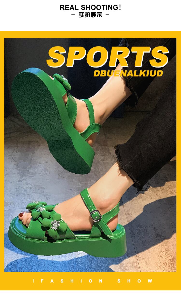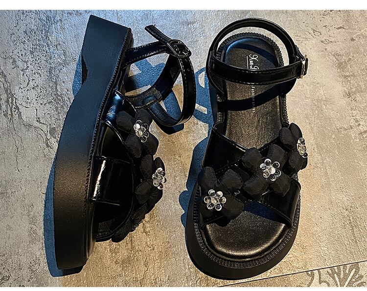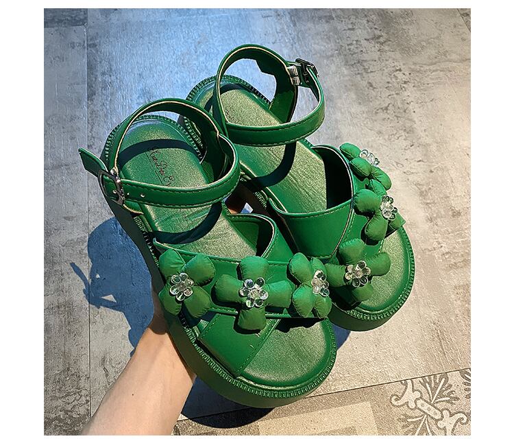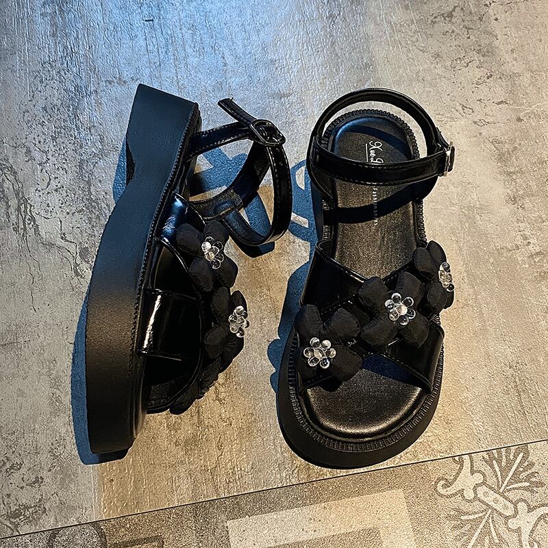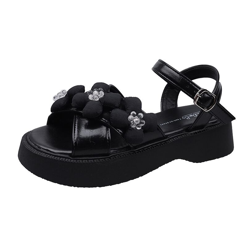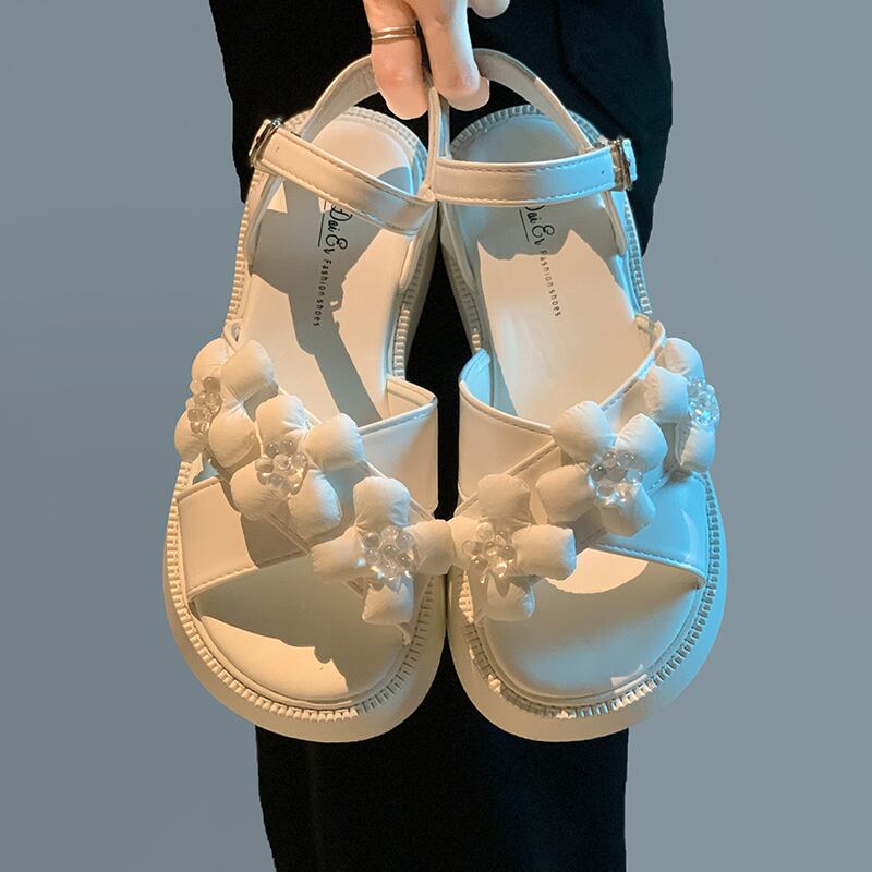 サンダル女性の2022年夏の新しいファッションオールマッチレトロクリスタルフラワースポンジケーキ厚い底滑り止めビーチシューズ潮 靴 サマー 夏物 フラワーデザイン jxjxf73035313740