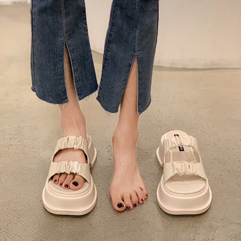 レトロスリッパ女性の2022年夏の新しいスタイルの厚いヒール滑り止めネット赤いファッションオールマッチ小さな一言スリッパ レッド ミュール 靴 シューズ サマー 夏物 jxjxf26005721916