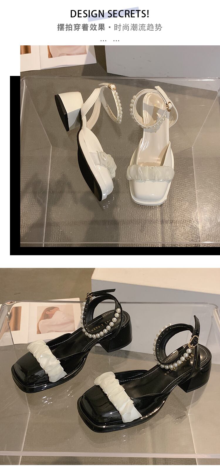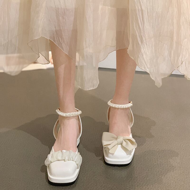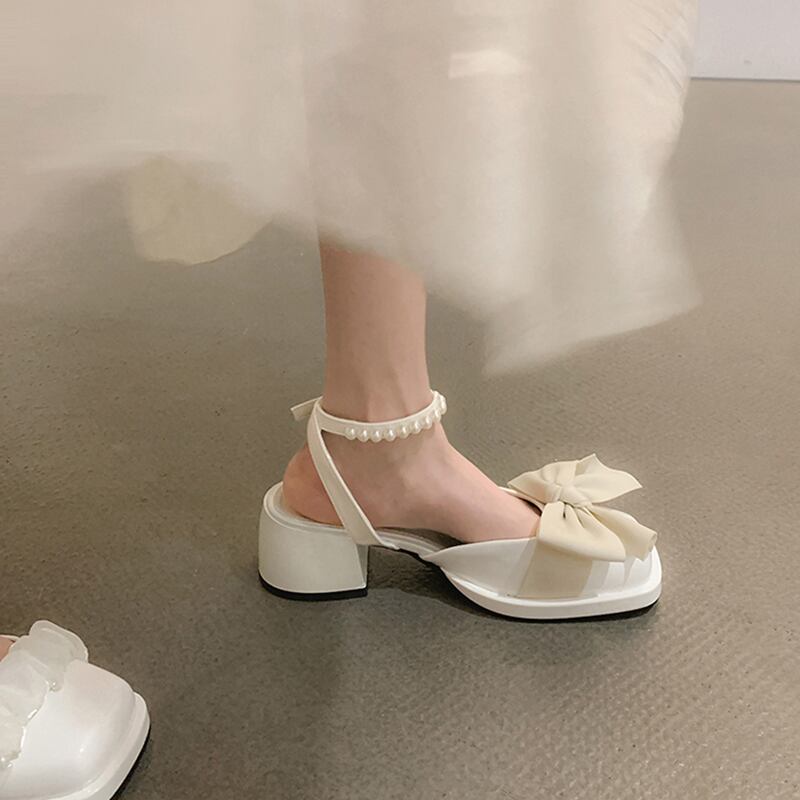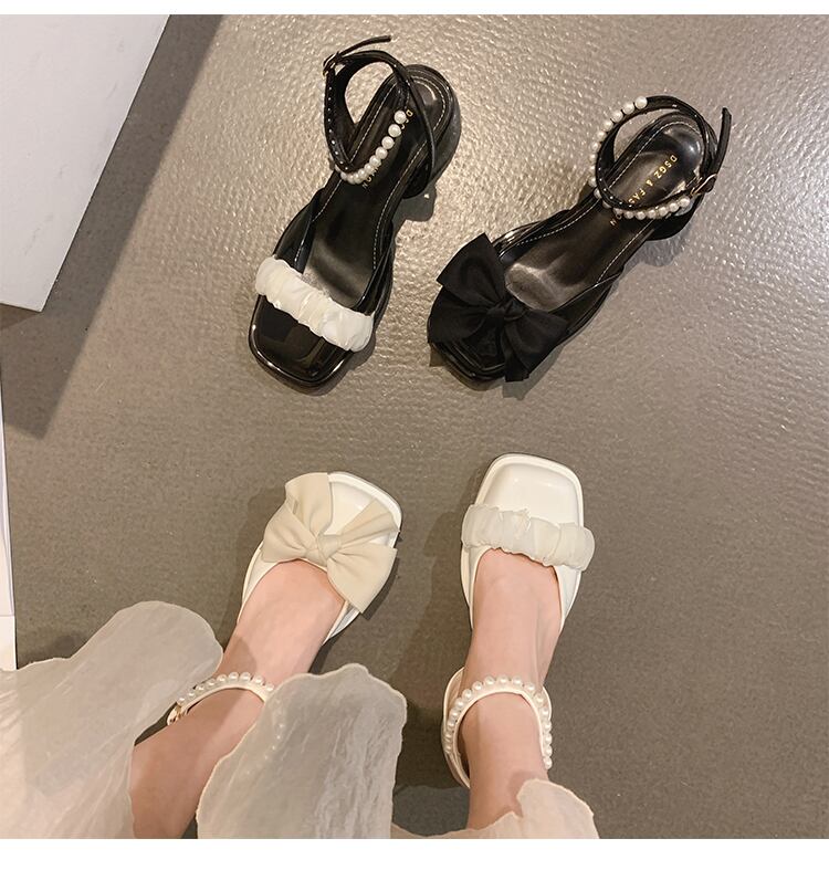 レトロバオトウサンダルレディース2022夏の新しい弓厚いかかと滑り止めファッションオールマッチフェアリースタイルの小さな革の靴 シューズ リボン ヒール サマー 夏物 レザー jxjxf80385065954