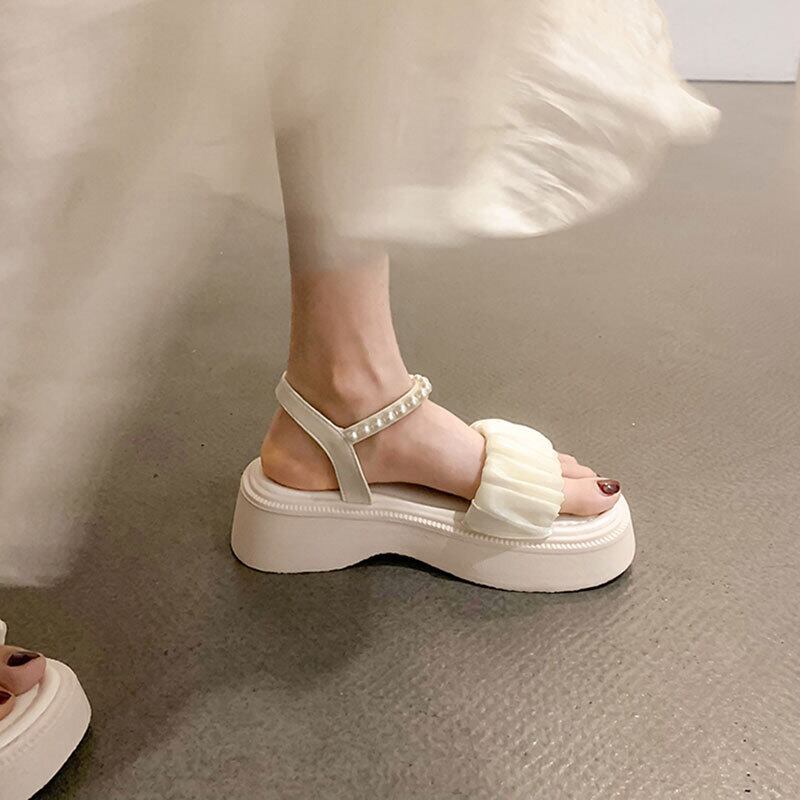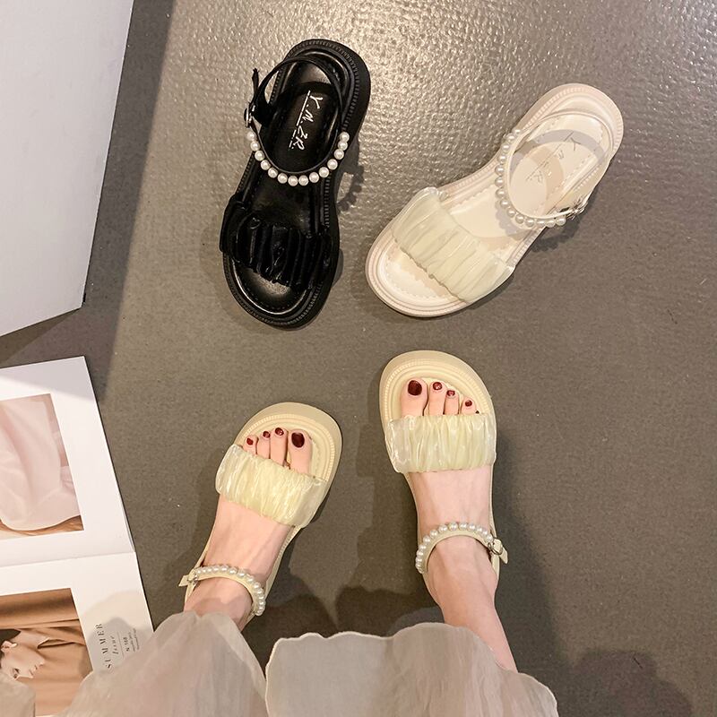 ネットレッドサンダルレディース2022夏新しいスーパーファッションフェアリースタイルパールバックル厚底滑り止めビーチシューズ 靴 サマー 夏物 真珠 jxjxf86904841457
