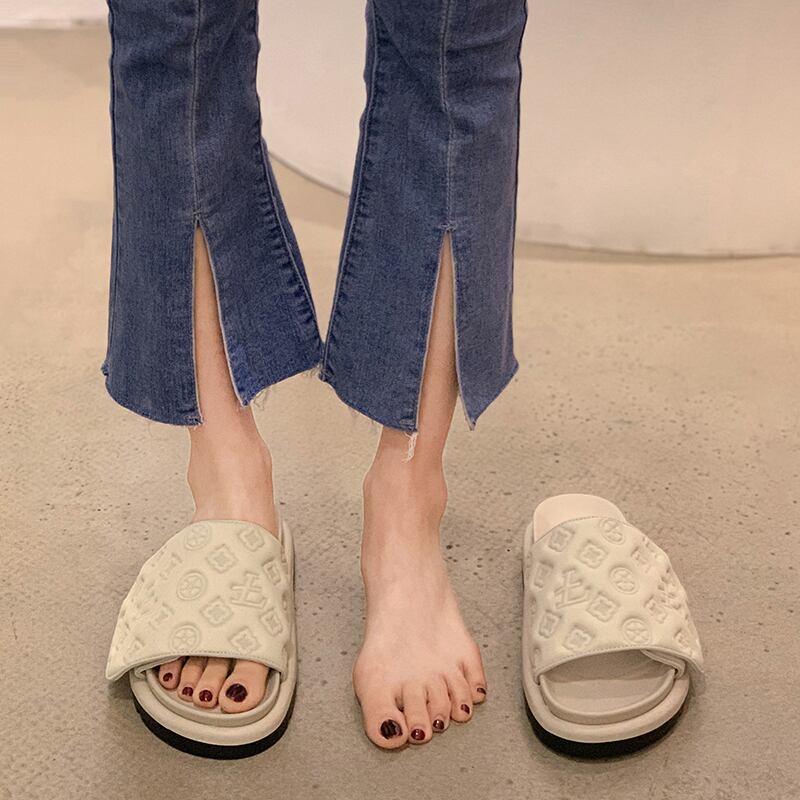 女性の夏の2022年夏の外のスリッパ新しいマフィンケーキ滑り止めネット赤スーパーファッションオールマッチ快適なレジャー一言スリッパ レッド ミュール 靴 シューズ サマー 夏物 jxjxf26378988425