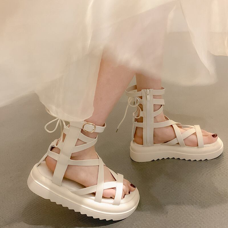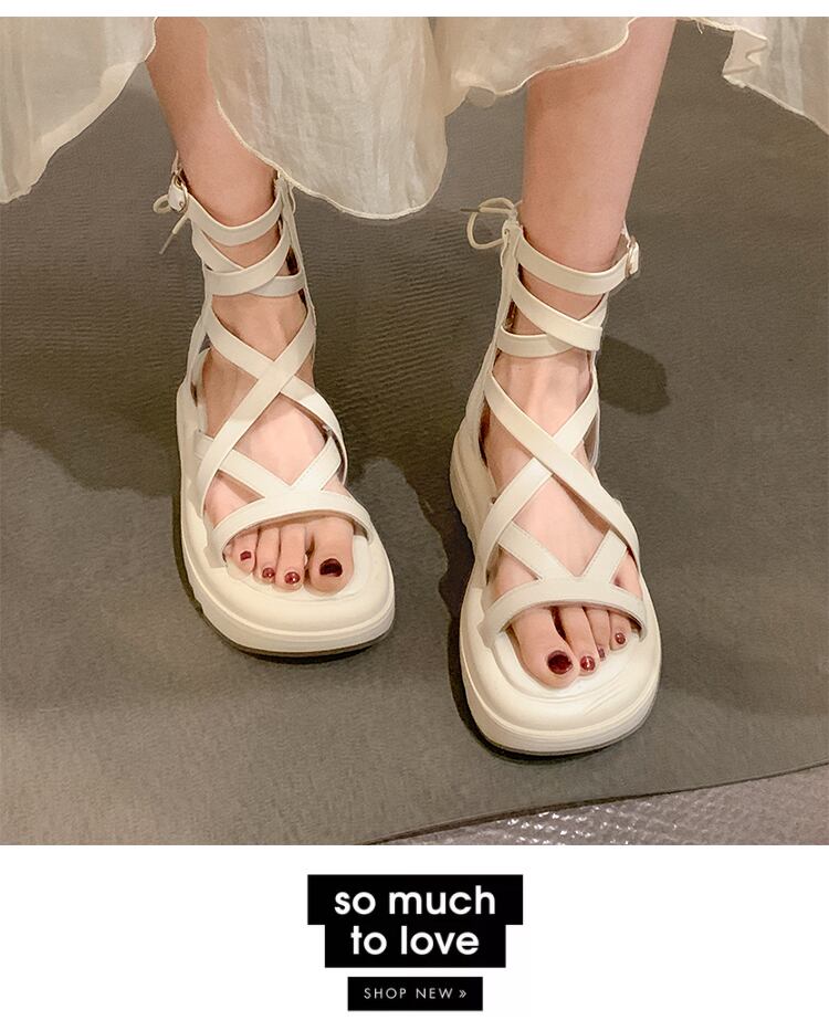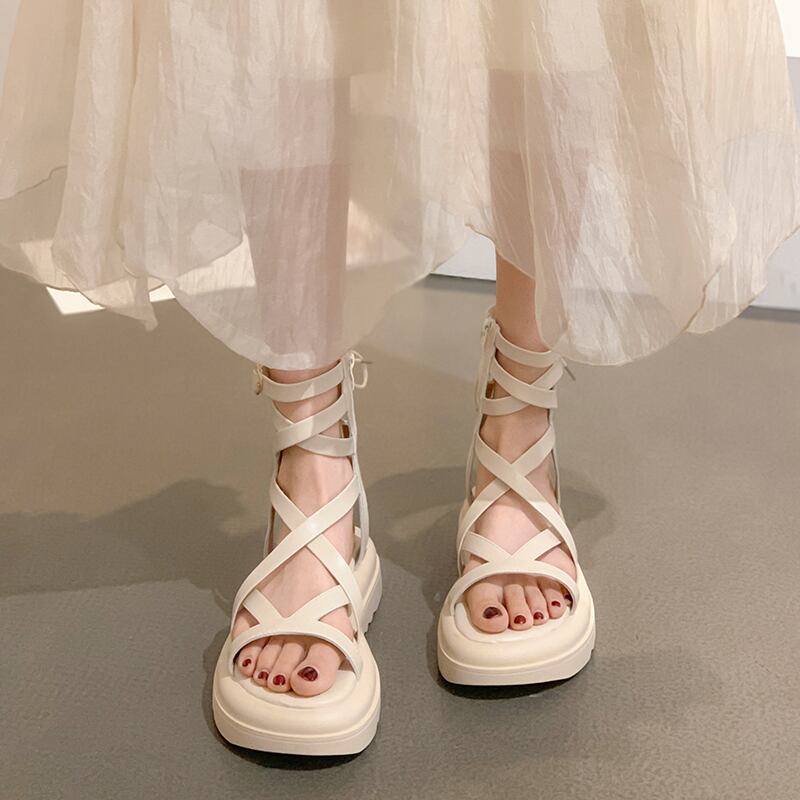 サンダル女性ins潮2022夏新しいスーパーファッションレトロワイルド小さな厚い底滑り止めローマの靴 シューズ サマー 夏物 jxjxf85449735332