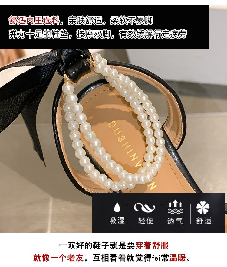ネットレッドサンダルウィメンズ2022サマーハンドレッドマッチングスカートパールレースアップシックヒールノンスリップヒール 靴 シューズ 夏物 真珠 jxjxf2701949601