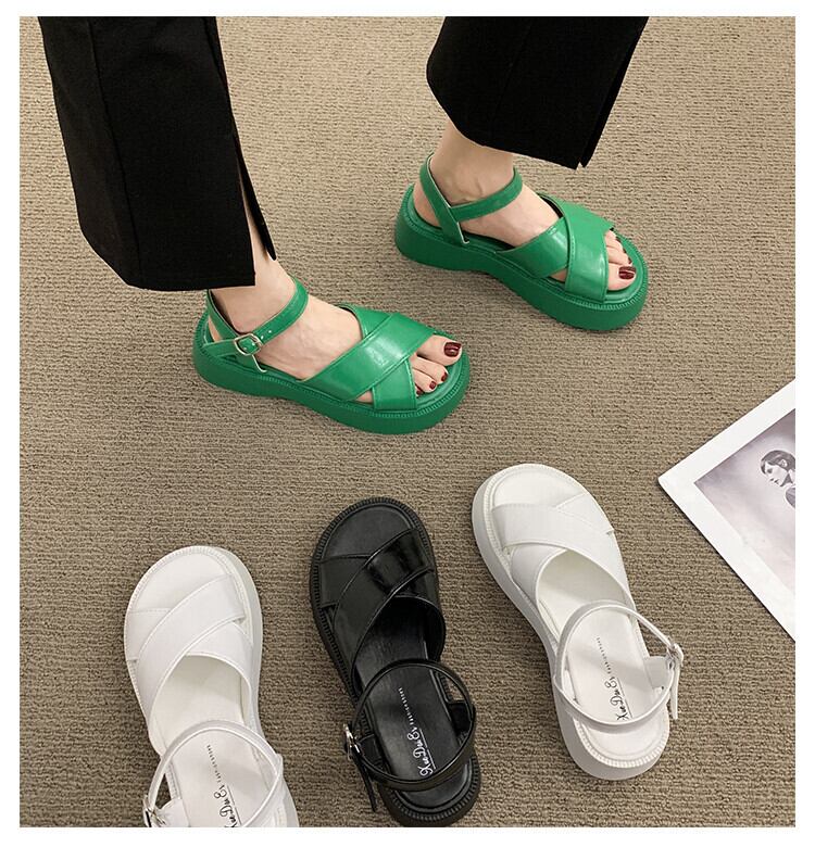 サンダル2022夏の新しいファッションレトロな小さなスポンジケーキ厚い底滑り止め一言ビーチシューズ潮 靴 サマー 夏物 スリッポン jxjxf76576673658