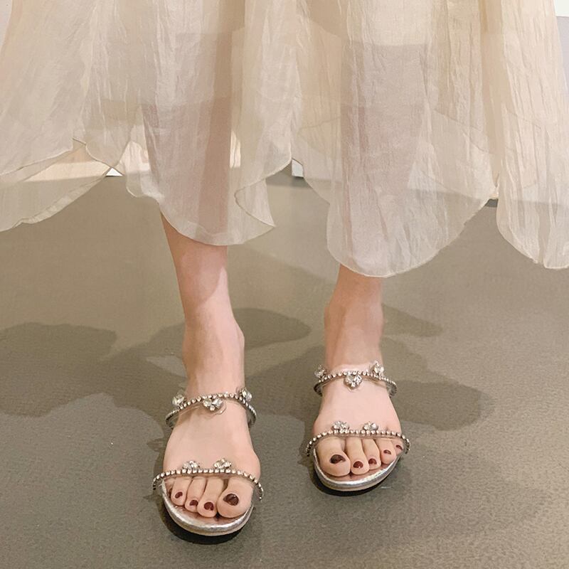 ネットレッドサンダルレディース2022夏新しいフェアリーウィンドスーパーファイアオールマッチレトロラインストーンフラット滑り止めローマシューズ 靴 サマー 夏物 jxjxf47753688607