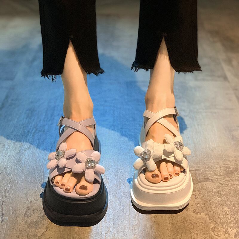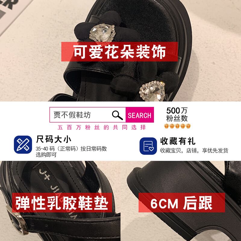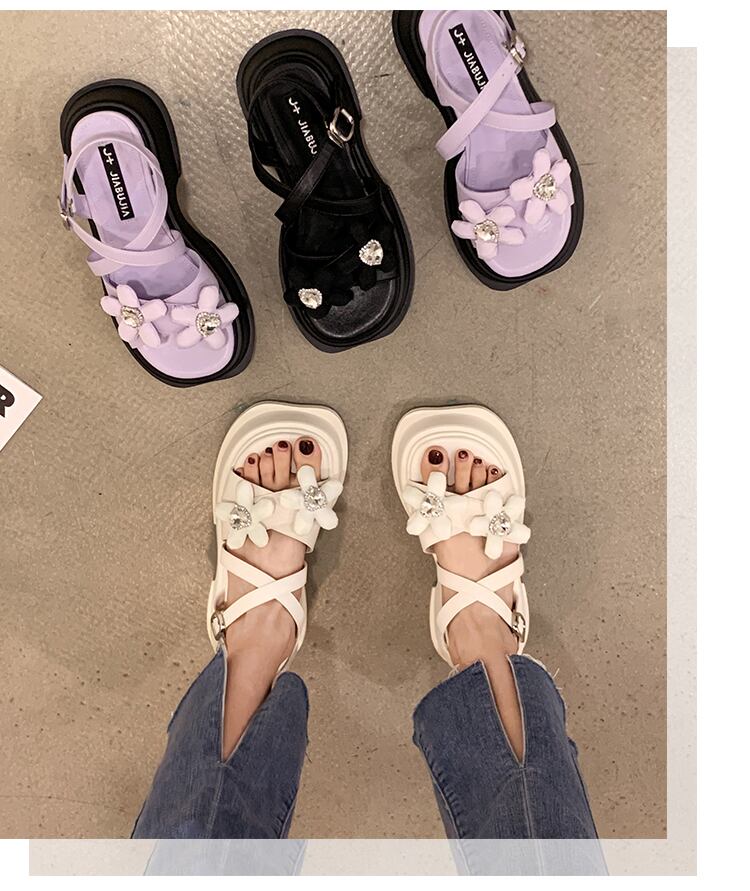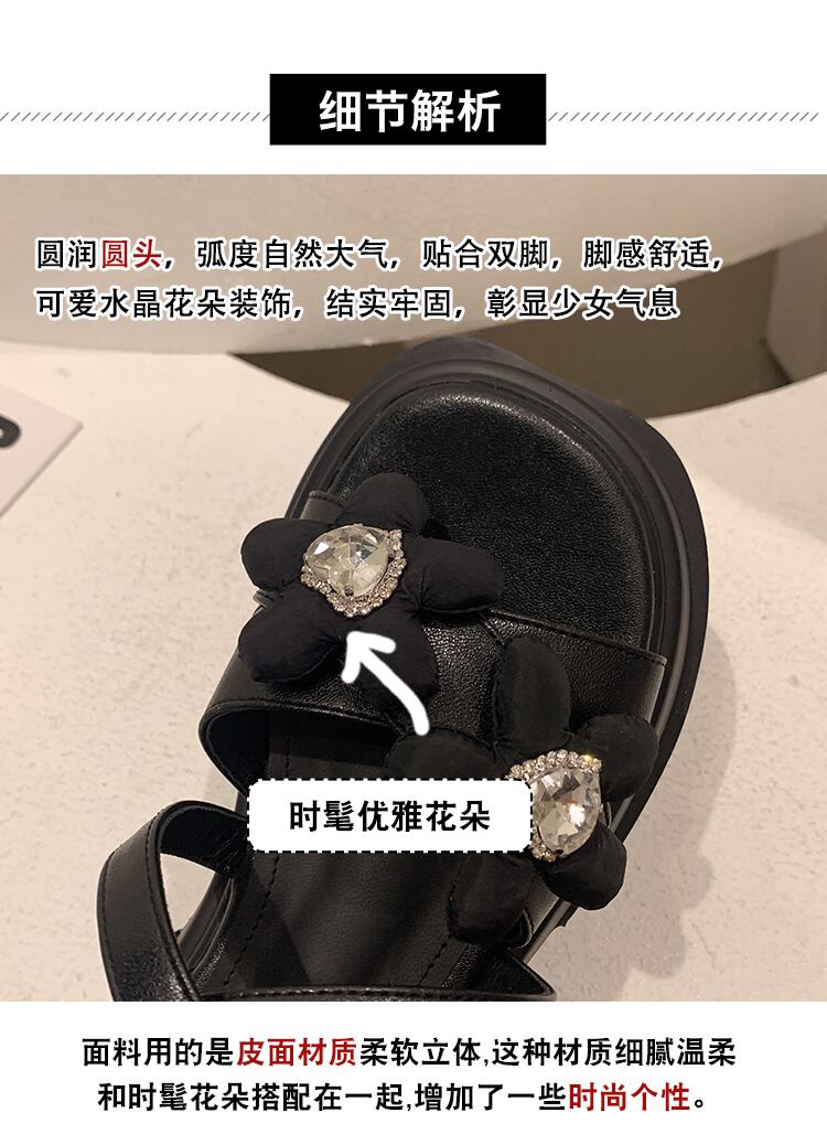 サンダルレディース2022年夏の新しいラインストーンの花厚いかかと滑り止めファッションオールマッチ小さなレトロなローマの靴 シューズ ヒール サマー 夏物 フラワーデザイン jxjxf79247684052