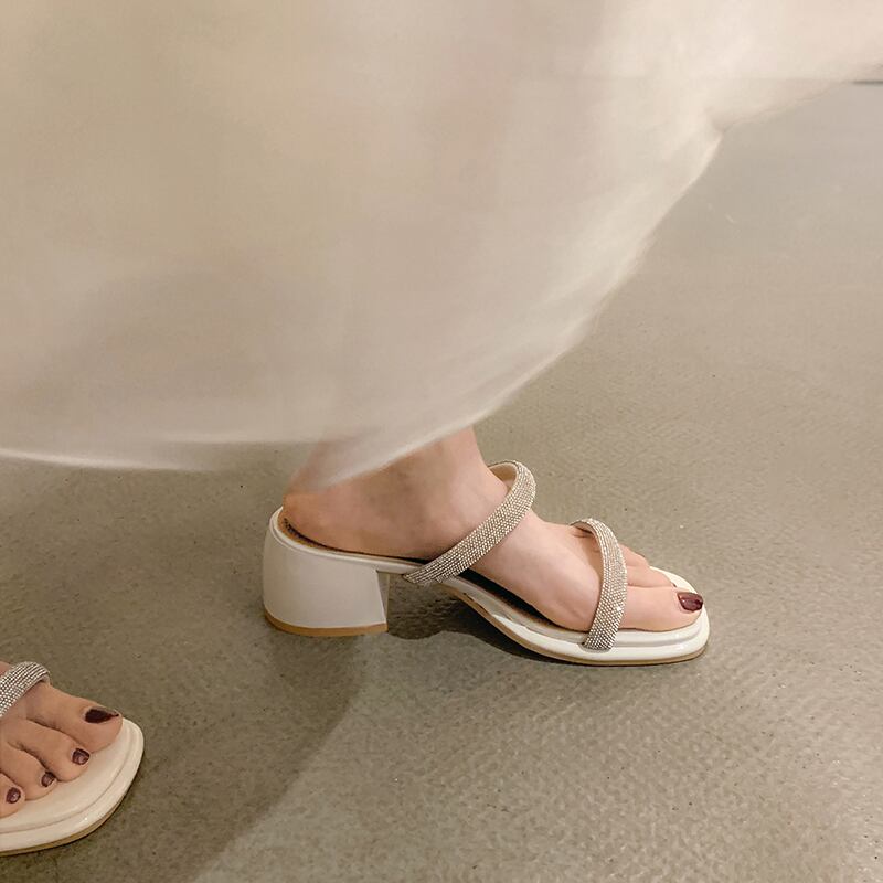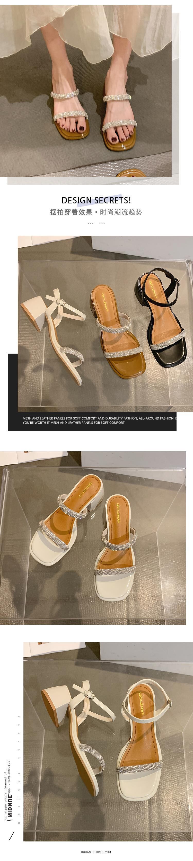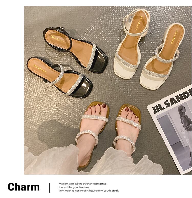 サンダル2022女性の新しい夏のラインストーンミッドヒール滑り止めスーパーファッションオールマッチフェアリースタイルレトロローマの靴 シューズ サマー 夏物 jxjxf56584751374