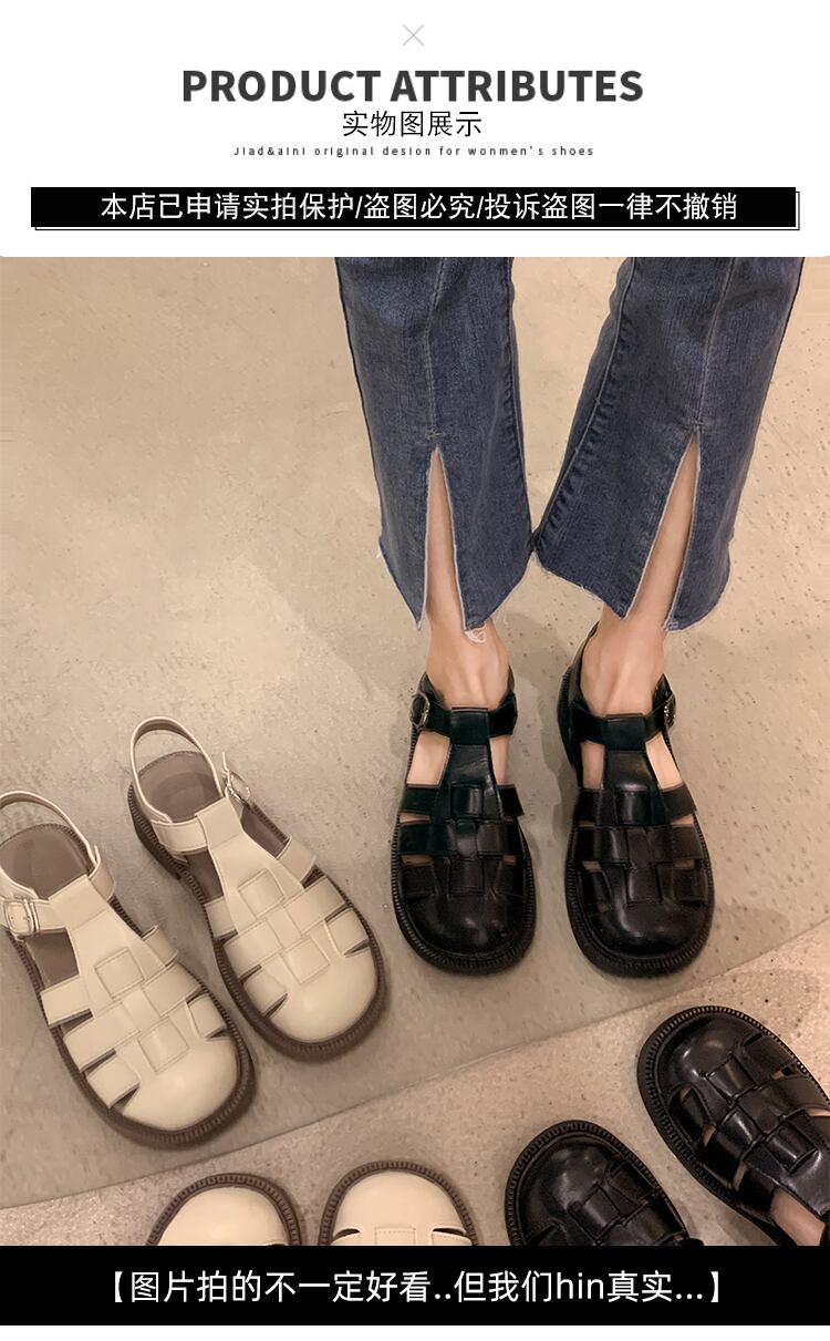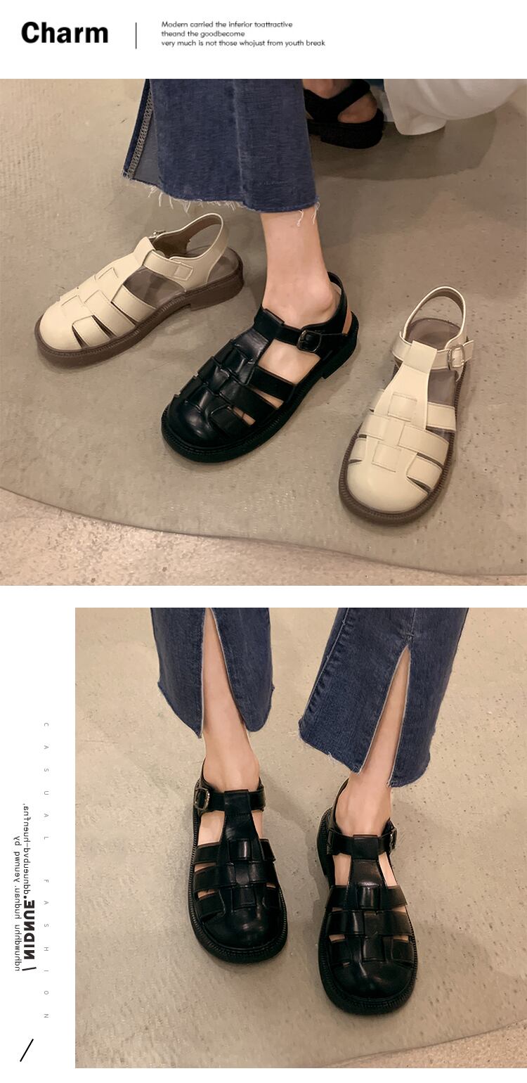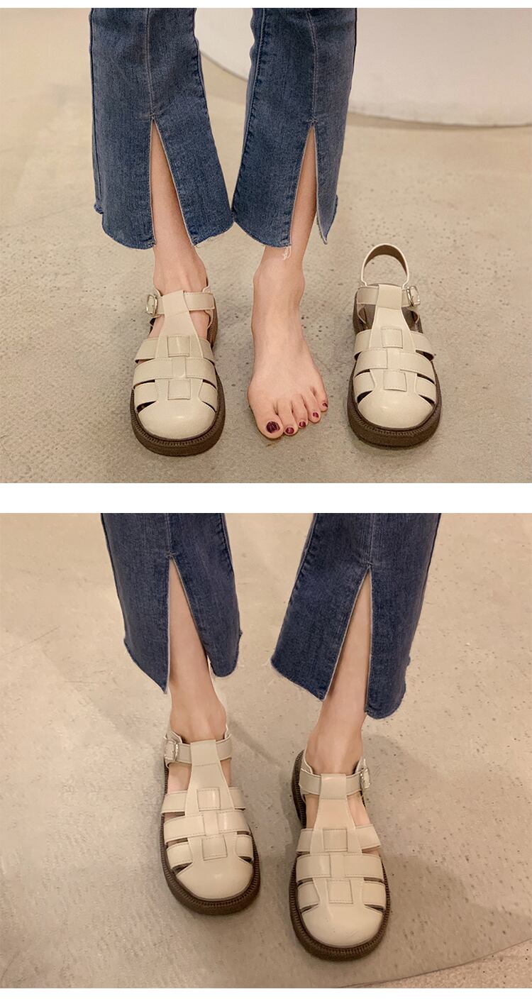 ローマの靴の女性の2022年夏の新しい平底スーパーファッションオールマッチ学生レトロ包頭織りサンダル潮 シューズ サマー 夏物 jxjxf83191332680