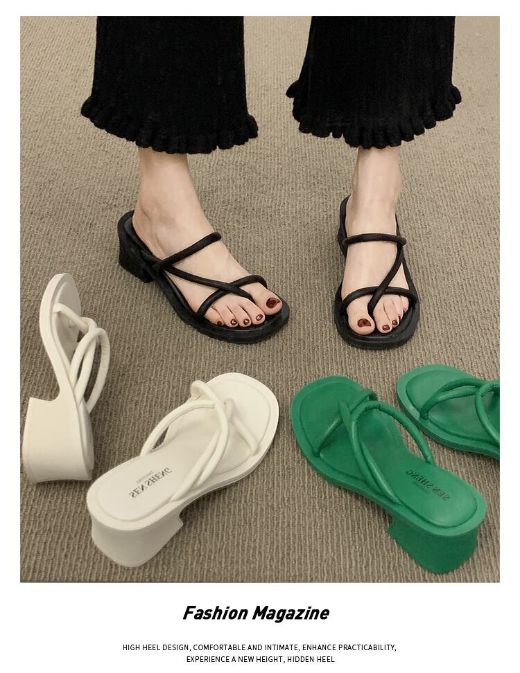 2022年夏の女性の夏に出かけるスリッパ新しいセットトゥの厚いヒール滑り止めネットレッドスーパーファッションオールマッチレトロサンダルとスリッパ 靴 シューズ ミュール サマー 夏物 jxjxf40455876188