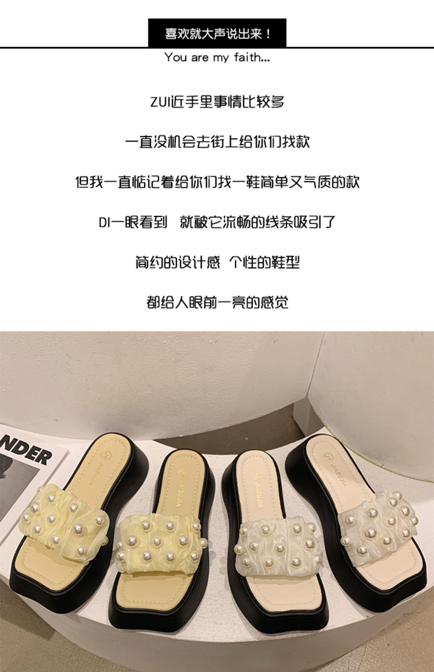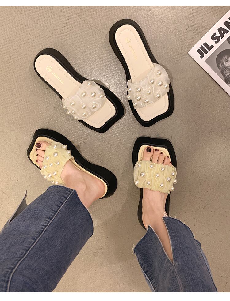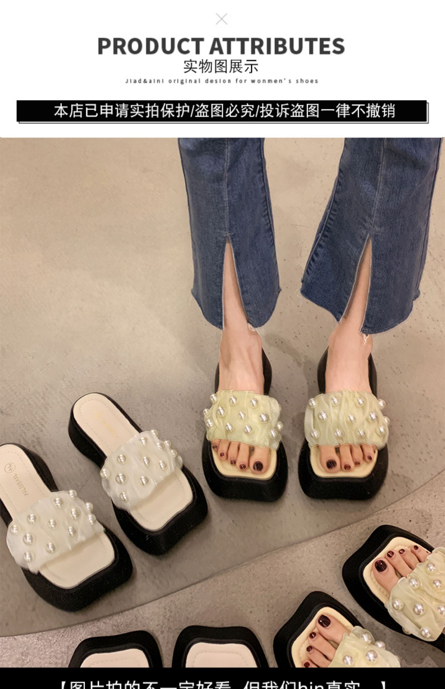 スリッパ女子サマーウェア2022年新作ファッションオールマッチレトロパール一言厚底滑り止めサンダルとスリッパタイド ミュール 靴 シューズ 夏物 真珠 jxjxf9318922089