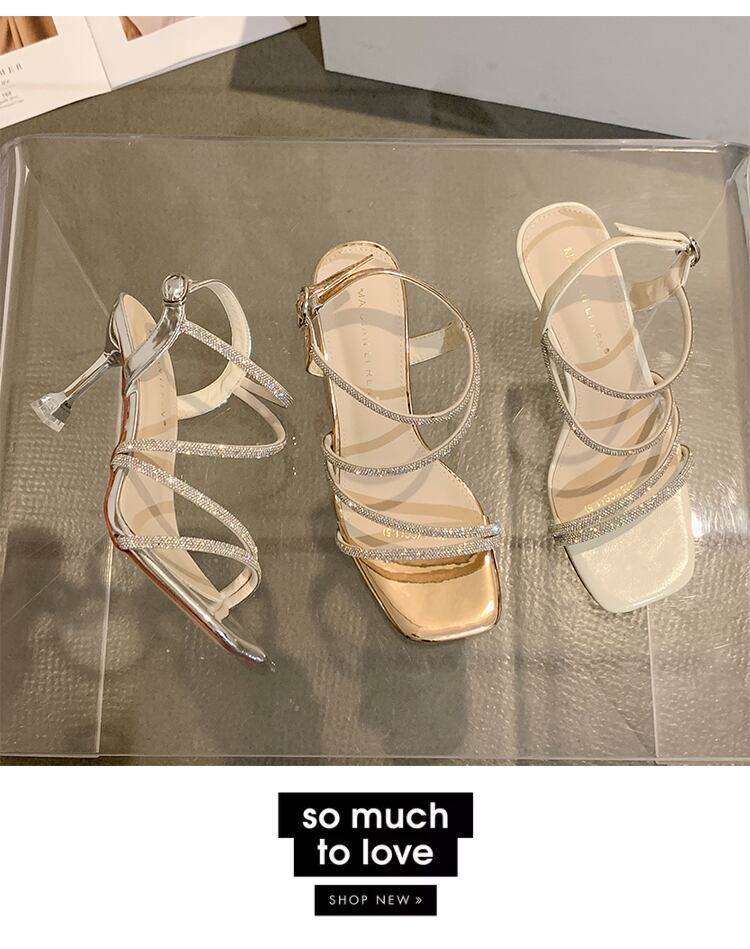 サンダルレディーススカート2022夏新作ラインストーンスティレットネットレッドスーパーファッションオールマッチフェアリースタイルハイヒール 靴 シューズ サマー 夏物 jxjxf14431327372