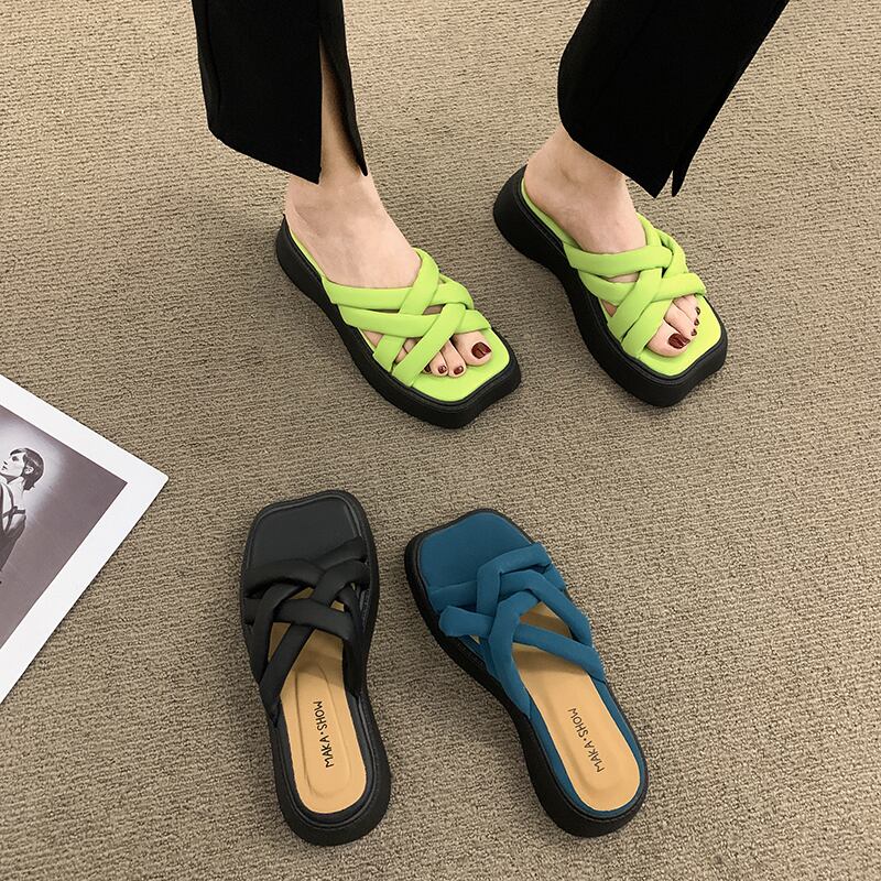 アウターウェアスリッパ女性の2022年夏の新しいファッションオールマッチレトロ織りの小さな厚い底滑り止めサンダルとスリッパ ミュール 靴 シューズ サマー 夏物 jxjxf86058879383