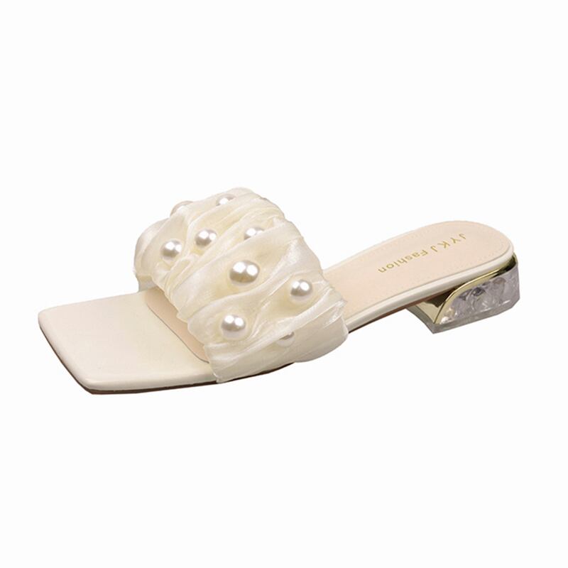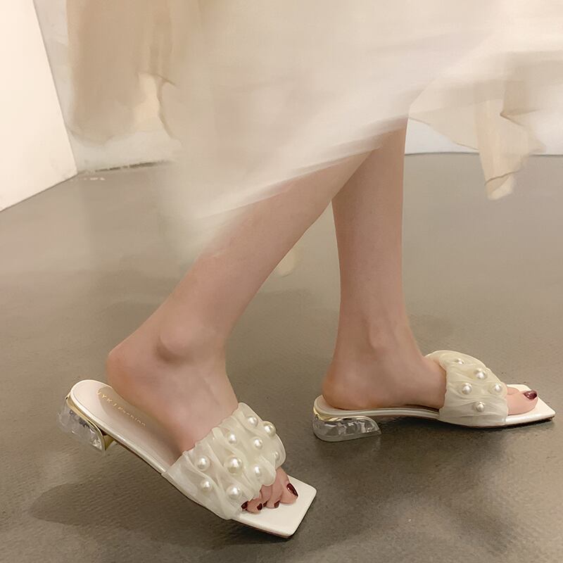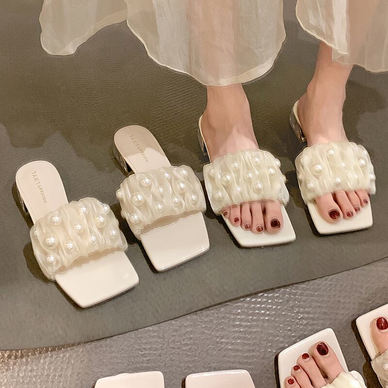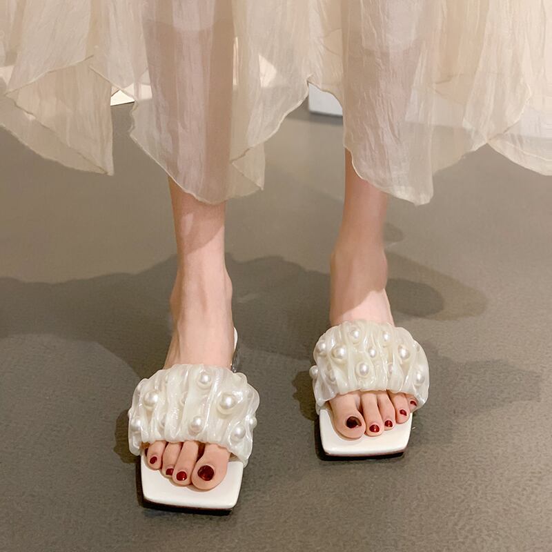 夏のスリッパ女性の2022年の新しいアウターウェアファッションオールマッチパールフェアリーウィンドローヒールノンスリップワンワードサンダルとスリッパ ミュール 靴 シューズ サマー 夏物 スリッポン 真珠 jxjxf54570322544