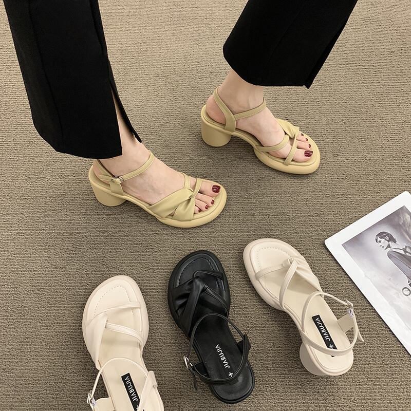 フランスのハイヒールの靴の女性の2022年夏の新しいクロス厚いヒールの滑り止めのファッションオールマッチレトロな一言ベルトサンダル シューズ サマー 夏物 ハーネス jxjxf40702339234