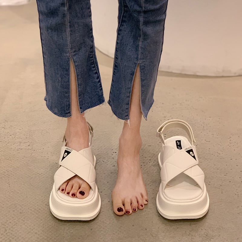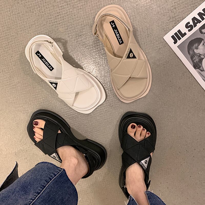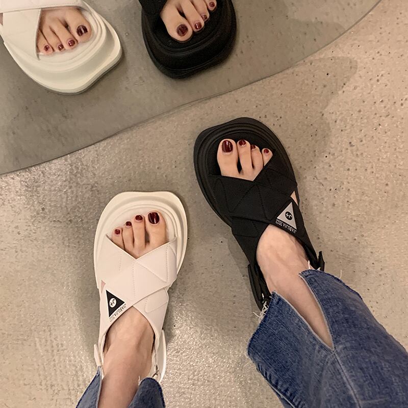 ビーチサンダル女性の2022年夏の新しいクロス厚いヒール滑り止めファッションオールマッチ小さなカジュアルなローマの靴 シューズ サマー 夏物 jxjxf89123461972