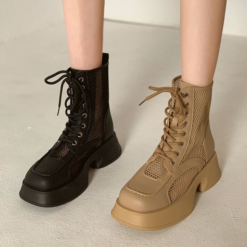 JiaBuフェイクレディースシューズブーツ2022年夏新しいメッシュ通気性のある厚いヒールメッシュブーツオールマッチのブリティッシュスタイルのショートサンダル 靴 サマー 夏物 jxjxf60821524467
