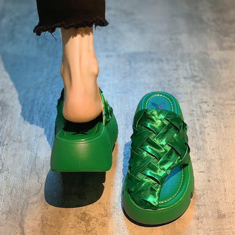 包頭ハーフスリッパレディースサマーアウター2022新作サテン厚底スリッパファッションレトロサンダル流行 ミュール 靴 シューズ 夏物 jxjxf83551717069