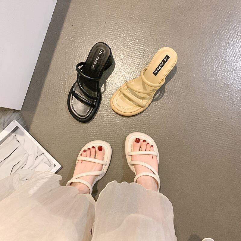 ネットの赤いスリッパの女性の2022年夏の新しいアウターウェアファッションオールマッチ穏やかなレトロな厚いヒール滑り止めサンダルとスリッパの潮 レッド ミュール 靴 シューズ サマー 夏物 jxjxf25759360792