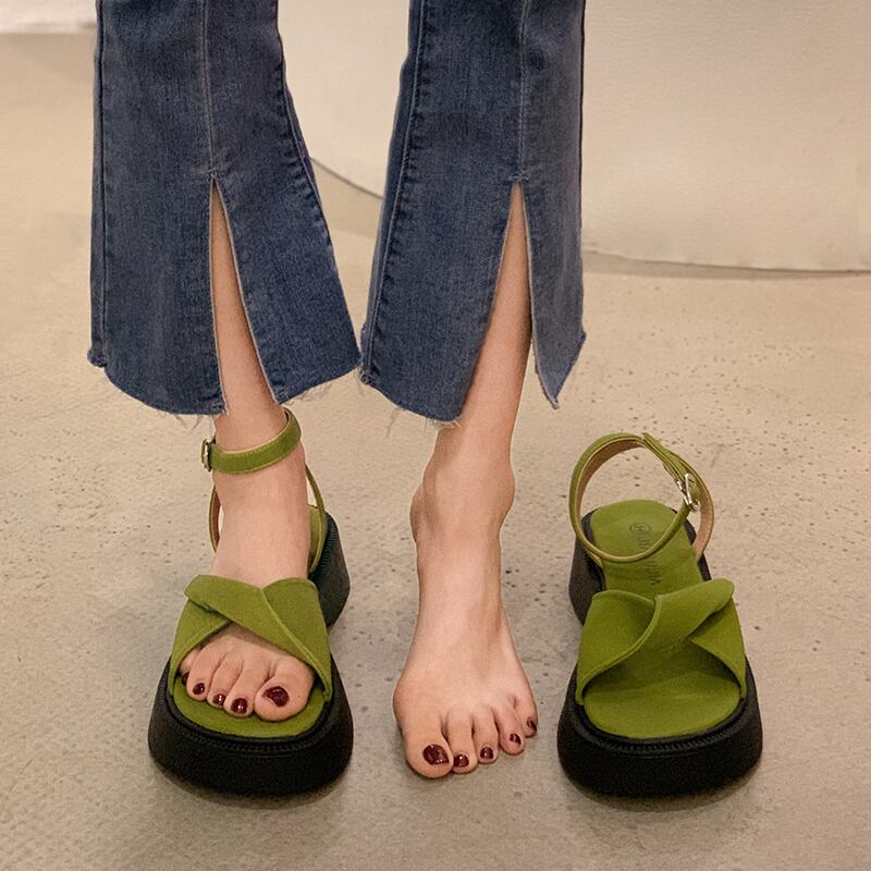 サンダル2022女性の新しい夏の厚い底滑り止めネット赤スーパーファッション小さなレトロなビーチローマの靴 シューズ レッド サマー 夏物 jxjxf54964172366