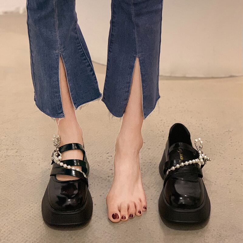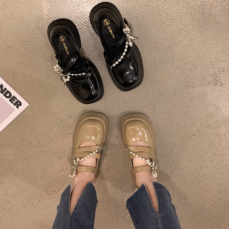 メリージェーンの靴の女性の2022年夏の新しいファッションオールマッチレトロパールスクエアヘッド厚いヒール滑り止めの小さな革の靴の潮 シューズ サマー 夏物 レザー 真珠 スクウェア jxjxf35473094521