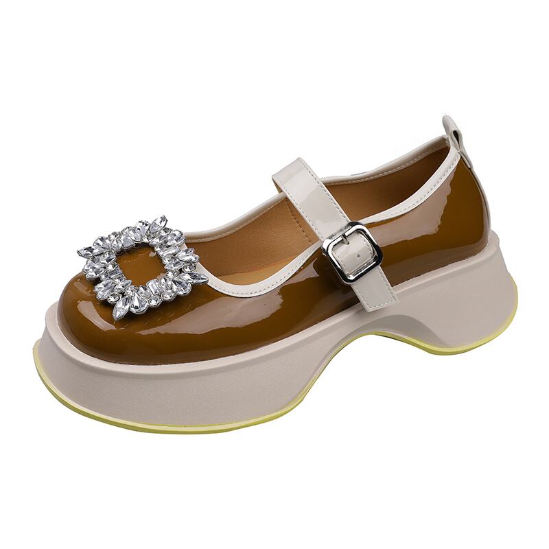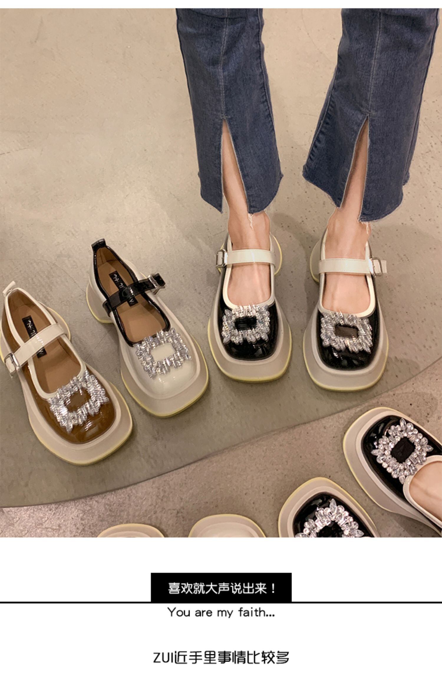 JiaBujiaメリージェーンシューズ女性の2022年夏の新しいラインストーンの厚いヒールオールマッチの妖精スタイルのレトロな小さな革の靴の潮 サマー 夏物 レザー jxjxf79494664610