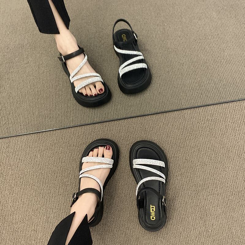サマーサンダルレディース2022新しいファッションオールマッチ優しいレトロラインストーンスカート厚底滑り止めビーチシューズ 靴 夏物 jxjxf79170116361