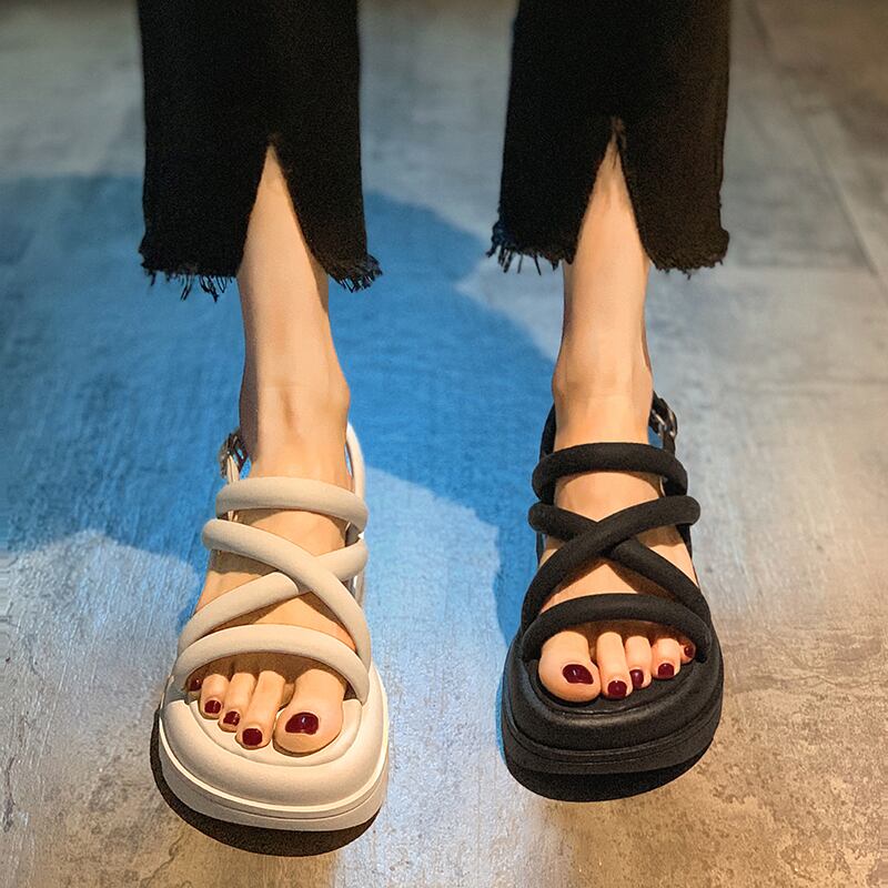 ローマのサンダル女性の2022年夏の新しいレトロな野生の小さなマフィン厚い底滑り止めカジュアルビーチシューズ 靴 サマー 夏物 jxjxf9401647046