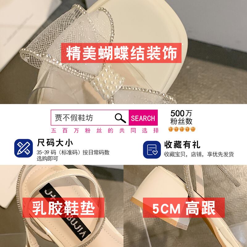 サンダル女性の厚いかかと2022年夏の新しい妖精スタイルのファッションパールボウ小さなオールマッチハイヒール リボン 靴 シューズ サマー 夏物 真珠 jxjxf23362523870