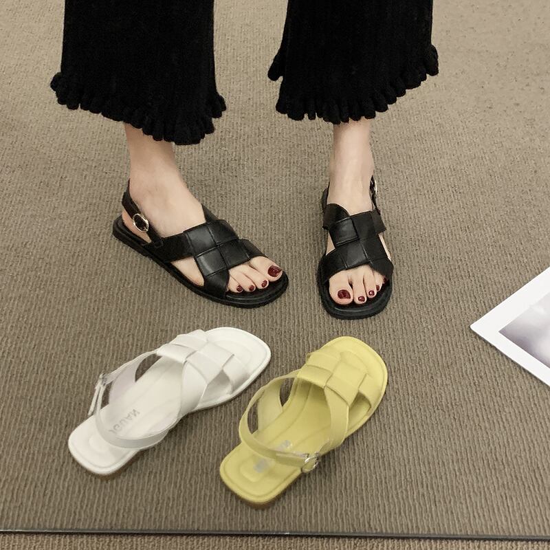 ネットレッドローマンサンダルレディース2022夏新しい織りフラット滑り止めスーパーファッションワイルドレトロビーチシューズ 靴 サマー 夏物 jxjxf74966158066