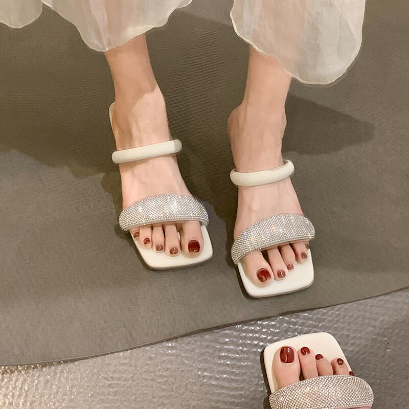 サンダルとスリッパ2022年夏の新しいファッションオールマッチネットレッドレトロラインストーンスティレットフェアリースタイルのビーチサンダル ミュール 靴 シューズ サマー 夏物 jxjxf1057792118