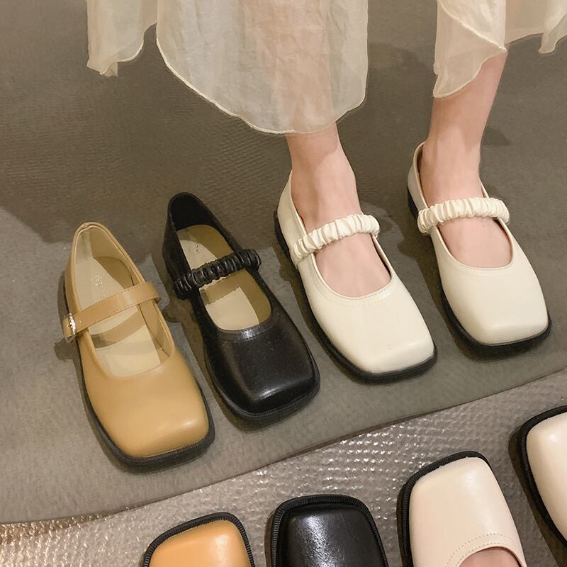 eseスタイルのシングルシューズ女性の2022年夏の新しいファッション100マッチングスカートスクエアヘッド浅い口フラット滑り止めの小さな革の靴 レッド サマー 夏物 レザー スクウェア jxjxf8602289163