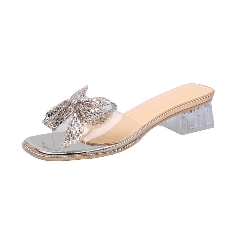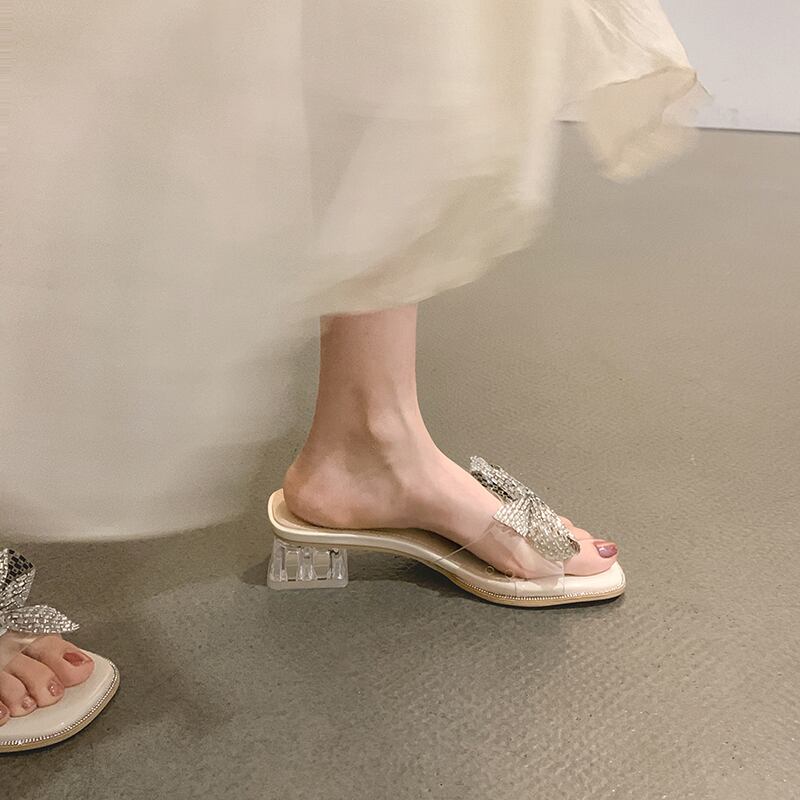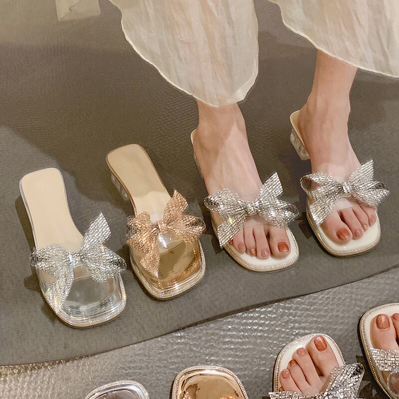 サンダルとスリッパの女性は2022年夏の新しい透明な弓の結晶のローヒールの滑り止めの妖精スタイルのフリップフロップを着用します リボン ミュール 靴 シューズ サマー 夏物 jxjxf93356941033