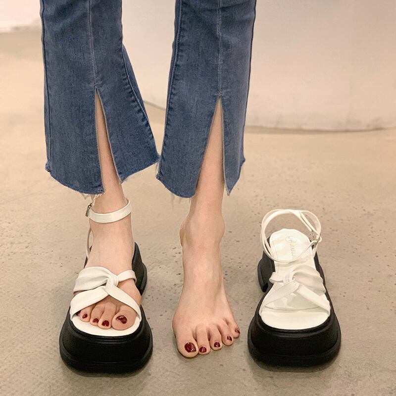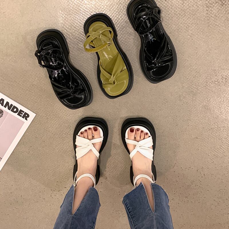 サンダル2022女性の新しい夏のクロスバックル厚いヒール滑り止めファッションオールマッチ小さなレトロなローマの靴 シューズ サマー 夏物 jxjxf12051378213