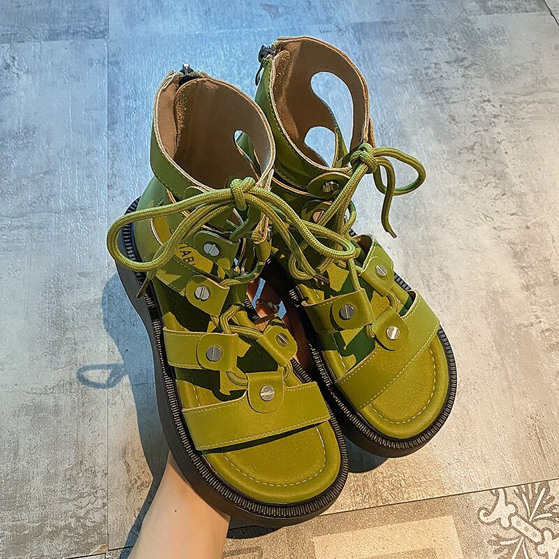 ローマのサンダルレディース2022年夏の新しいレースアップ厚底滑り止めネットレッドファッションオールマッチ小さなレトロサンダル 靴 シューズ サマー 夏物 jxjxf92508701727