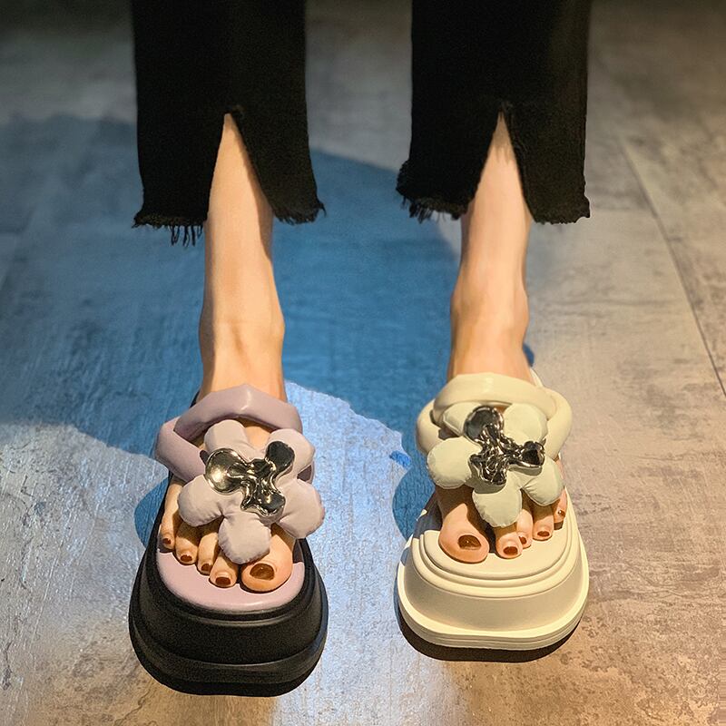 ビーチサンダルの女性の夏服2022年の新しいファッションオールマッチ花小さな厚いかかと滑り止めのカジュアルなサンダルとスリッパ ヒール 靴 シューズ ミュール サマー 夏物 フラワーデザイン jxjxf69891343121