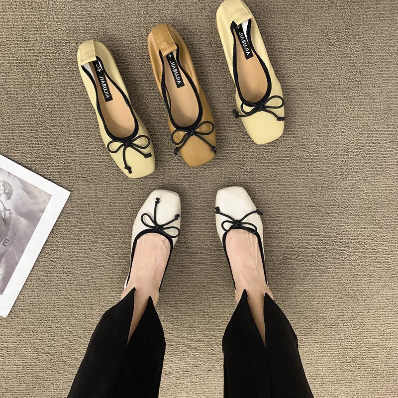 スクエアトゥシューズウィメンズ2022夏新作ファッションオールマッチレトロボウシャローマウスローヒールノンスリップスクープシューズタイド 靴 リボン サマー 夏物 スクウェア jxjxf57248431579